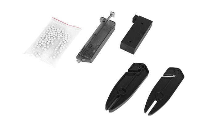 Konstrukcję repliki wykonano w większości z trwałego tworzywa sztucznego malowanego na czarny kolor. Metalowy jest zamek, lufa zewnętrzna, zespół tłoka, dźwignia przeładowania, montaże zawieszenia oraz język spustowy.