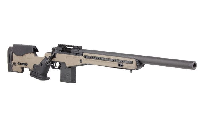 Sprężynowa replika karabinu snajperskiego wykonana z polimeru z metalowymi elementami wykonanymi z wysokiej jakości aluminium.