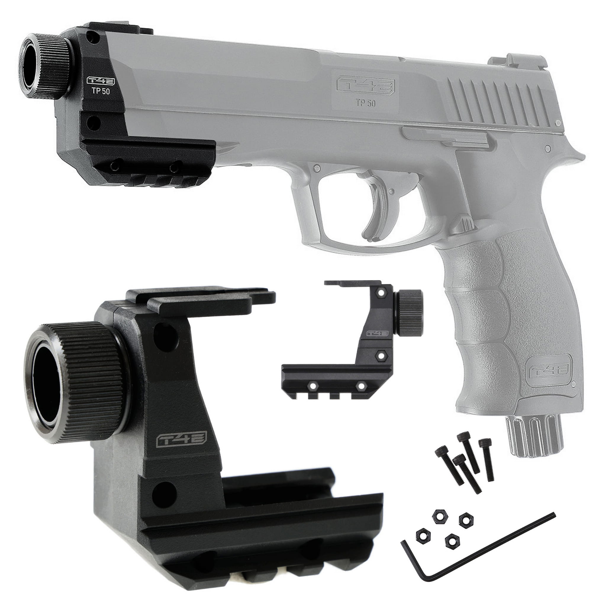 Polimerowy adapter naświetlającego urządzenia wylotowego X-Tracer przeznaczony do pistoletów TP50 marki Umarex T4E. Konstrukcja elementu wykorzystuje montaż na szynie Picatinny, jest niezwykle prosta w instalacji. Dodatkowa szyna umieszczona na urządzeniu pozwala natomiast na użycie oświetlenia taktycznego.
