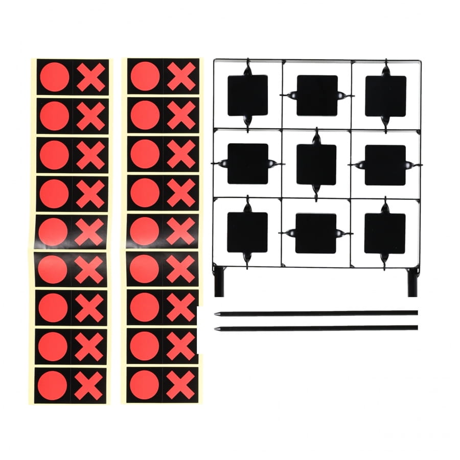 Cel wiatrówkowy RazorGun kółko-krzyżyk to mobilna strzelnica pneumatyczna wyposażona w 9 celów oraz lekką, składaną ramę.