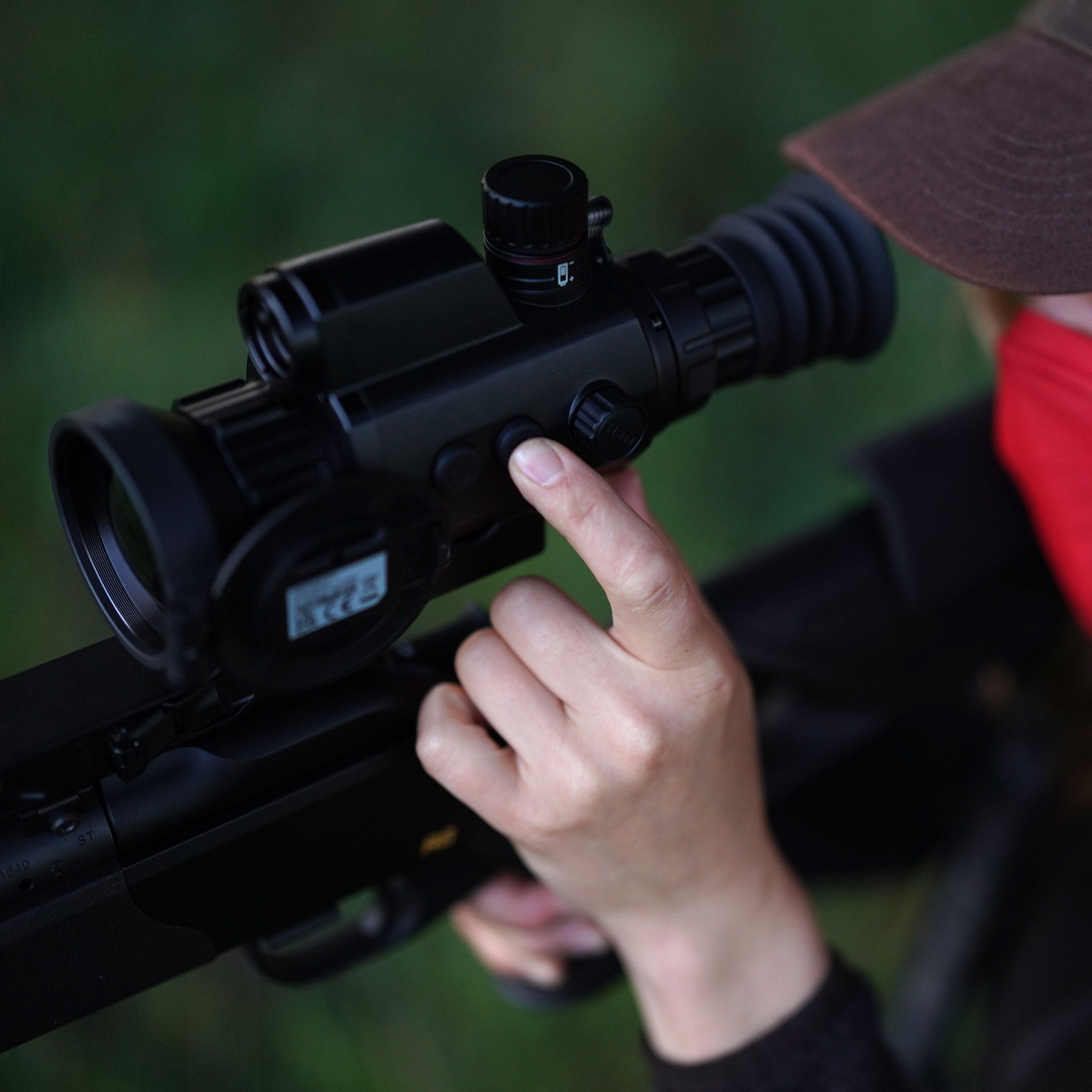 Termowizor HIKMICRO Panther został wyposażony w zintegrowany dalmierz laserowy, umożliwiający precyzyjne określenie odległości do celu, co pozwoli nam przewidzieć opad pocisku. W połączeniu ze zdecydowanie przekraczającym potrzeby myśliwskich strzelań zasięgiem detekcji termowizora wynoszącym 2600 m oraz optycznym powiększeniem 2,6x wspartym 8-krotnym zoomem pozwala nam na oddanie precyzyjnego strzału na bardzo dalekie odległości. Wbudowany w celownik moduł pozwoli nam na przechwycenie zdjęcia lub filmu, które zostaną zapisane na zintegrowanej karcie pamięci o pojemności 16 GB. Urządzenie może zostać również połączone za pomocą wbudowanego modułu Wi-Fi.