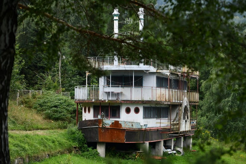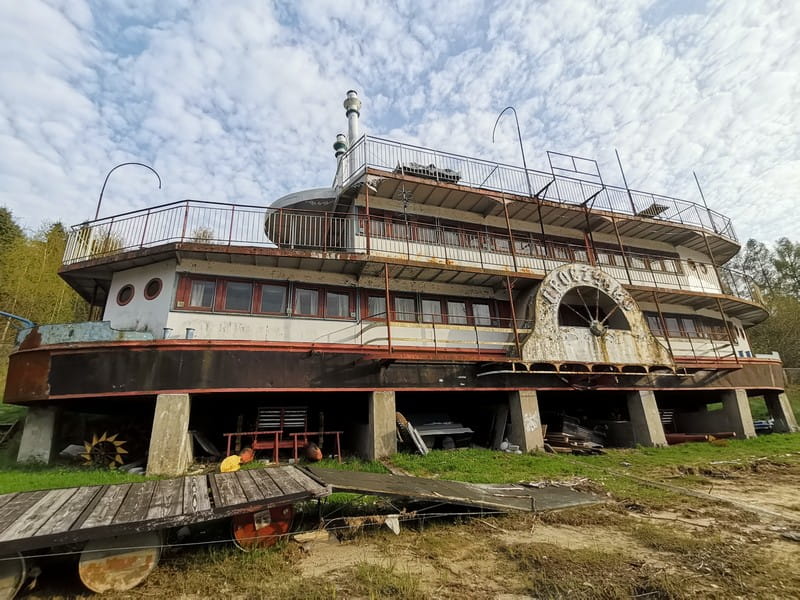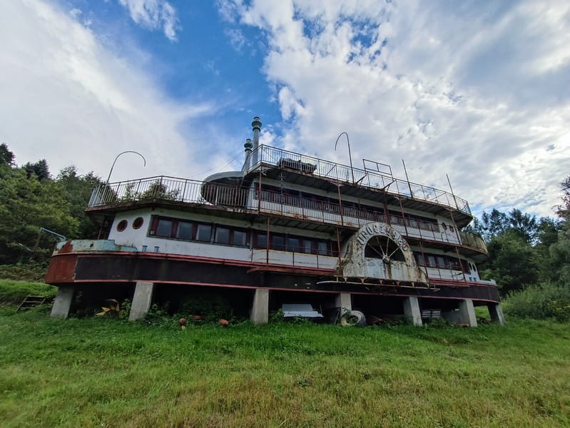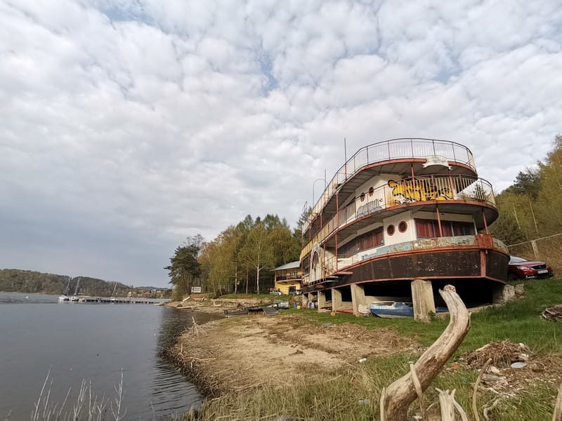 Ta opuszczona i teraz rdzewiejąca łódź, w przeszłości była centrum życia i tętniącą turystami restauracją o nazwie "Uroczysko" w czasach PRL-u. To miejsce działało w pobliżu dużego ośrodka wypoczynkowego, który niestety został później zburzony. Ta era rozkwitu dobiegła końca, a barka ostatecznie została wystawiona na sprzedaż. Przeszła przez aukcję i zmieniła właściciela. Kilka lat temu trafiła w ręce znanego piłkarza i biznesmena z Sądecczyzny, Piotra Świerczewskiego.