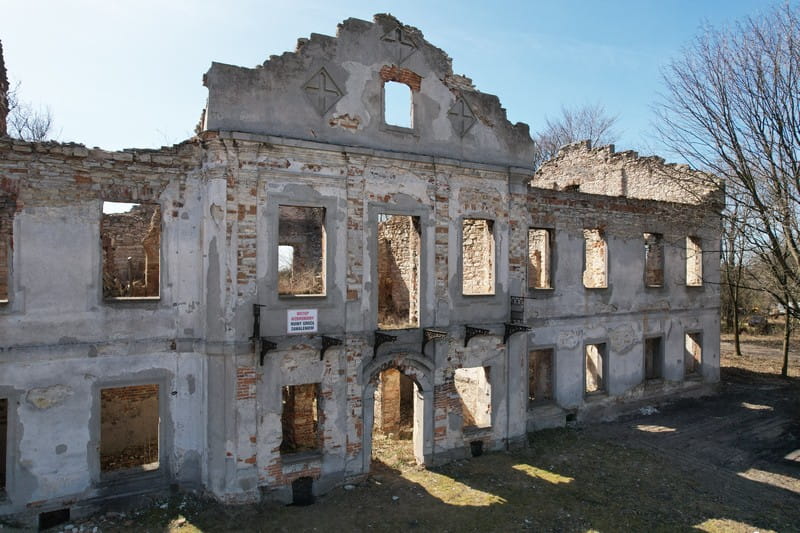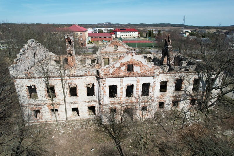 Pierwotnie był tu modrzewiowy dwór należący do rodziny Firlejów, spalony podczas potopu szwedzkiego. Na jego miejscu w drugiej połowie XVII wieku (prawdopodobnie w latach 1669–1681) kasztelan krakowski Stanisław Warszycki wzniósł murowany pałac w stylu polskiego baroku. Zgodnie z informacją zawartą w Dyariuszu wyprawy wiedeńskiej królewicza Jakuba Sobieskiego, 26 lipca 1683 r. w pałacu przebywał król Jan III Sobieski. Pierwotny piętrowy budynek, podpiwniczony i kryty dachem mansardowym był przebudowywany w kolejnych stuleciach, nie tracąc jednak swojego barokowego charakteru. Od frontu ulokowany był dziedziniec, za budynkiem rozciągał się natomiast ogród, co sprawia, iż w całym założeniu możemy dopatrywać się nawiązań do francuskich zespołów Entre cour et jardin.