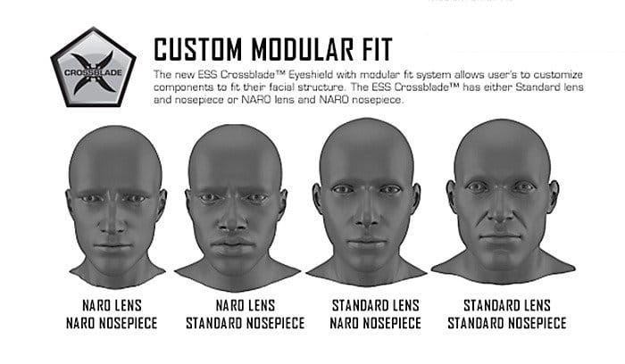 UWAGA: W ramach platformy ESS Cross-Series™ wszystkie wizjery Crossblade™ są kompatybilne i wymienne z ramkami ESS Crossbow®, Crosshair™ i Suppressor™. Noski Crossblade™ Standard i Crossblade™ NARO NIE są kompatybilne z innymi produktami serii Cross.