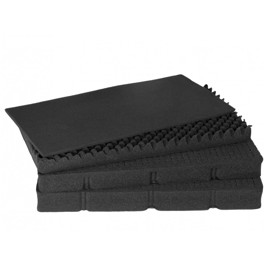 W odróżnieniu od zwykłej pianki typu„szczęki rekina” modułowy wkład piankowy pozwala na organizację przestrzeni transportowej dopasowaną do naszych indywidualnych potrzeb. Piankowe wkłady w formie kostek można w łatwy sposób usuwać, dzięki czemu przestrzeń transportową możemy precyzyjnie dopasować do konkretnej jednostki broni, aparatu lub elektroniki. Komplet wypełnienia składa się z 3 elementów: grubej gąbki modułowej, cienkiej gąbki (warstwa pośrednia) i górnej gąbki „szczęki rekina”. Wkłady przeznaczone do kufra Poseidon 60.