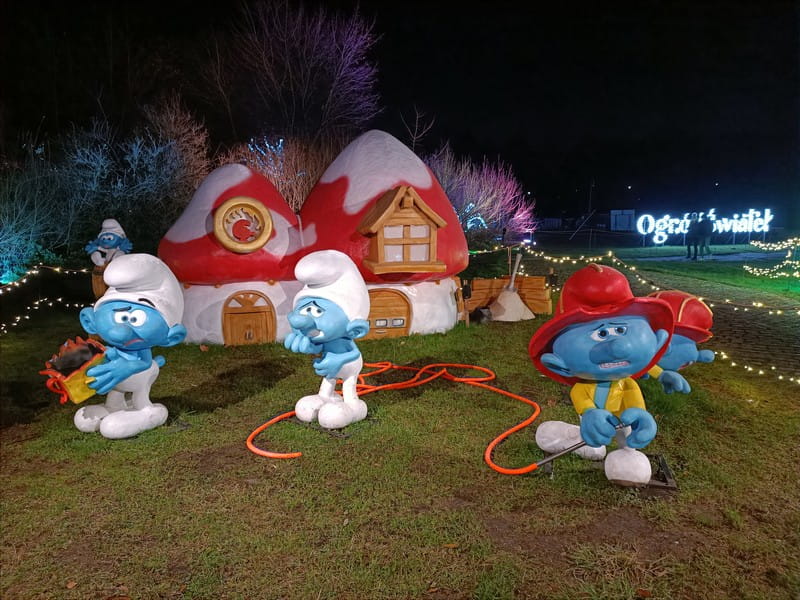Zwiedzamy-wioske-Smerfow-Krakow-Garden-of-Lights
