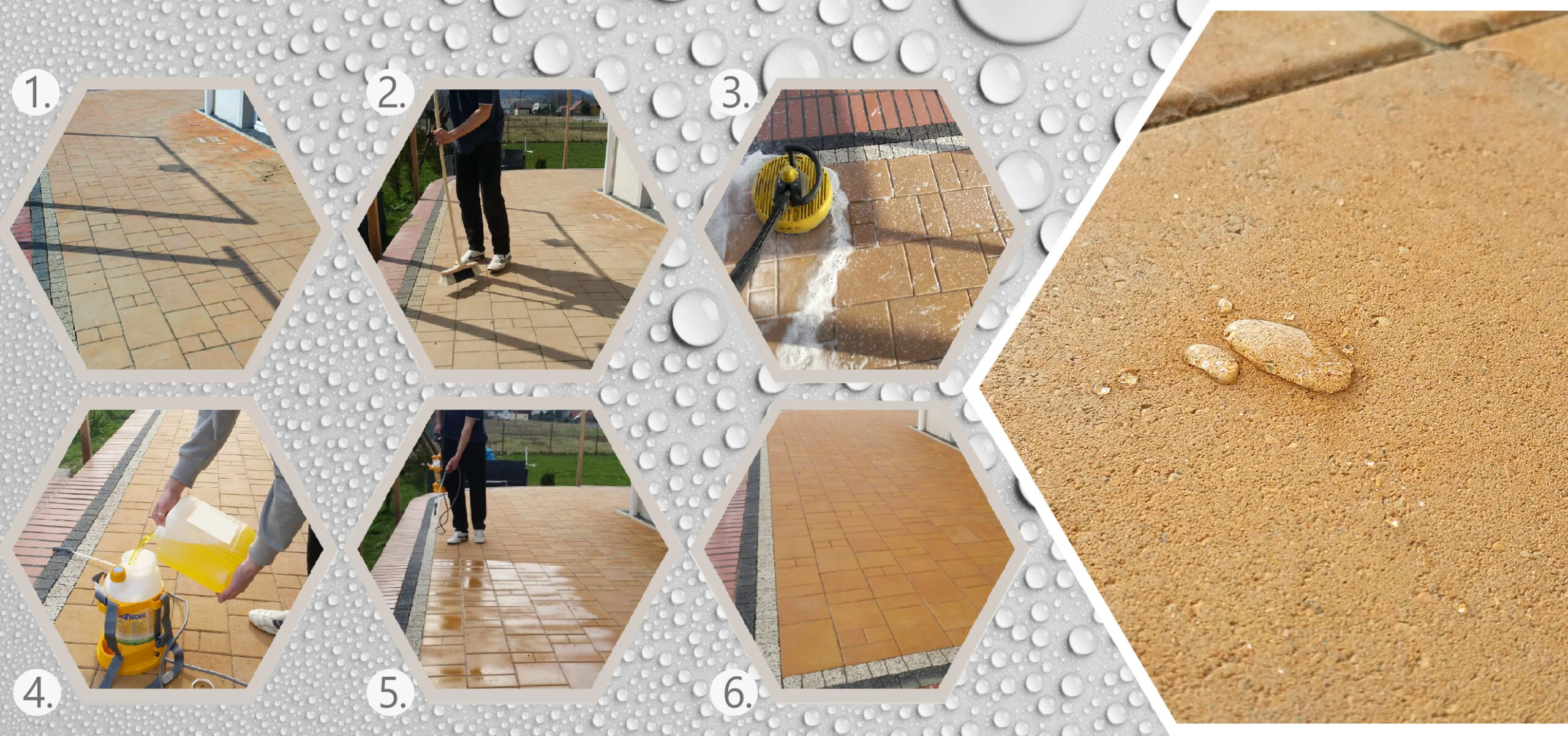 Impregnacja wgłębna gwarantuje wieloletnią ochronę przed wnikaniem wody deszczowej, wody stojącej i innych zanieczyszczeń, dzięki czemu zabezpieczone powierzchnie stają się bardziej trwałe oraz odporne na brudzenie. Hydrofobizacja wewnątrz powierzchni przedłuża żywotność i trwałość kostki brukowej oraz innych powierzchni szczególnie jesienną i wiosenną porą gdy w ciągu doby temperatury rosną i spadają poniżej 0 °C.