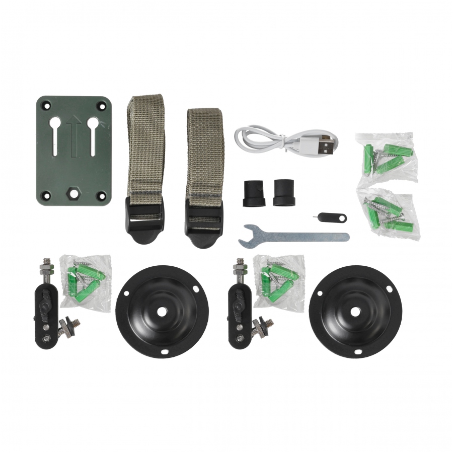 Kupując B4Hunt X7 GSM, otrzymujesz kompletny pakiet: fotopułapkę, akumulator 24 000 mAh, kartę pamięci 32 GB, panel solarny, uchwyty montażowe, paski, komplet śrub, instrukcję w języku polskim oraz testową kartę SIM z pakietem danych. To rozwiązanie typu „plug and play”, które możesz zamontować i uruchomić bez dodatkowych zakupów. Jedno urządzenie – pełna kontrola, bezpieczeństwo i spokój.