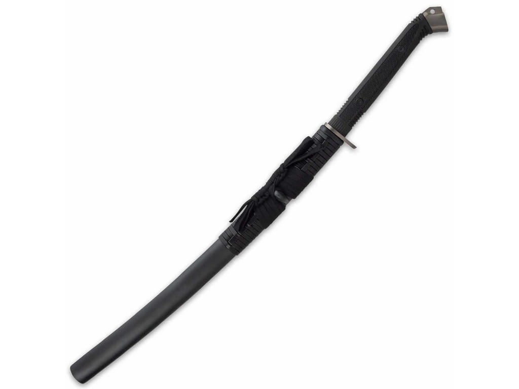 Midnight Forge Boshin Wakizashi jest częścią serii specjalnej edycji Honshu, która przenosi popularny miecz na nowy poziom nowoczesnego i eleganckiego wzornictwa dzięki inżynierii taktycznej i doskonałemu wyważeniu ostrza do rękojeści.Wakizashi ma 22 1/2” czarne ostrze ze stali wysokowęglowej 1060, dzięki czemu nie ma sobie równych pod względem ostrości i wytrzymałości.Zamiana tradycyjnych pułapek na elegancki współczesny styl, najnowocześniejszy Boshin jest niezaprzeczalnie nowoczesną bronią.Teksturowany TPR osłania rękojeść, zapewniając ergonomiczny, antypoślizgowy uchwyt, a rękojeść zwieńczona jest ponadgabarytową stalową głowicą wykończoną na szaro.Osłona odrzuca fantazyjne ozdoby na rzecz praktycznego, spiczastego wzoru elipsy.Zgodnie z czystym, funkcjonalnym motywem Boshin wakizashi, pochwa jest drewniana z półmatowym czarnym wykończeniem i ma czarne obicie ze sztucznej skóry i bawełniany sznurek.Dzierżenie Honsiu Boshin Midnight Forge Wakizashi jest prawie jak w stylu Zen — po prostu musisz tego doświadczyć na własnej skórze!