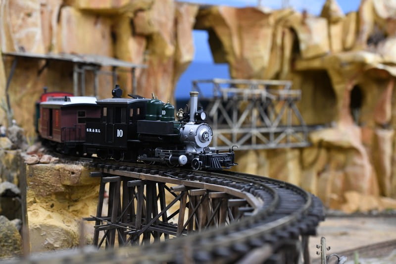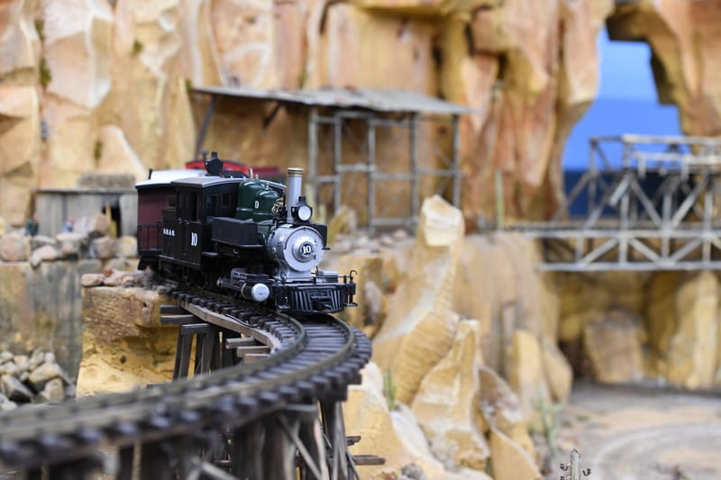 No i wiadomo pociągi Te są tutaj najważniejsze. Mkną przez tory w wielu miejscach, przez wsie, doliny, tunelami. Poruszają się z prędkością 1,5km/h, są zabytkowe i nowoczesne, towarowe i turystyczne. Zatrzymują się na stacjach. Jeżdżą z dzień jak i w nocy. W kolejkowym świecie dzień trwa 9 minut a noc 4 minuty i wtedy zapalają się światła latarni, wnętrza domów, kawiarni knajp. Fantastyczna sprawa.