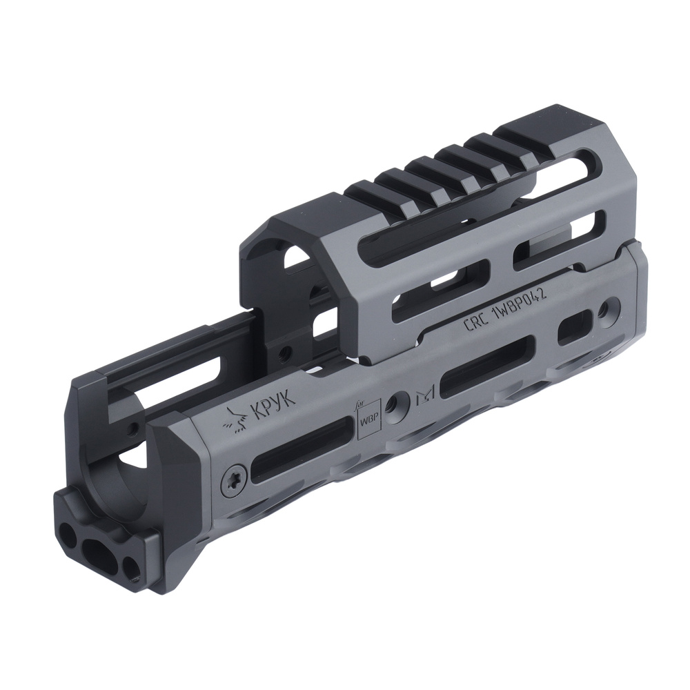 Dwuczęściowe łoże wykonane z frezowanego aluminium 6082, dedykowane do karabinków WBP Jack, Midi Jack oraz innych modeli opartych na konstrukcji AK‑74, AKM i AKS‑74. Komplet zawiera dolną część łoża oraz krótką nakładkę rury gazowej, które razem zastępują oryginalne elementy drewniane. Interfejs M‑LOK rozmieszczony na trzech płaszczyznach umożliwia montaż dodatkowych akcesoriów. Szyna Picatinny pozwala na instalację optyki, na przykład kolimatora.