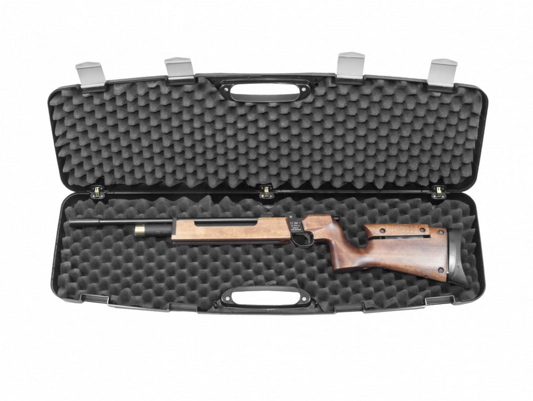 Kufer do transportu broni, wykonany z wytrzymałego tworzywa, wyłożony grubą gąbką o strukturze tzw. szczęki rekina – tak aby broń podczas transportu nie miała możliwości przesuwu.