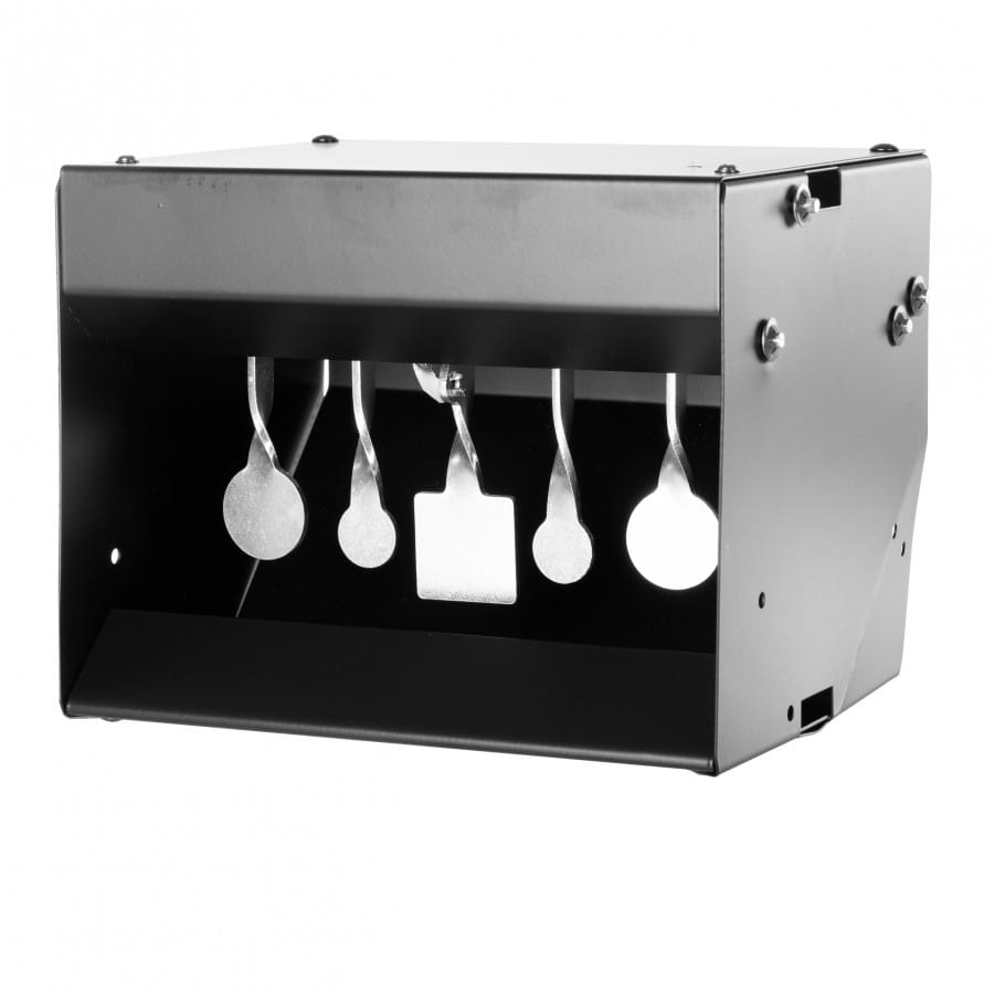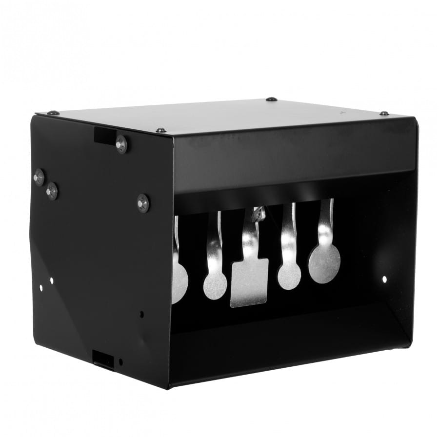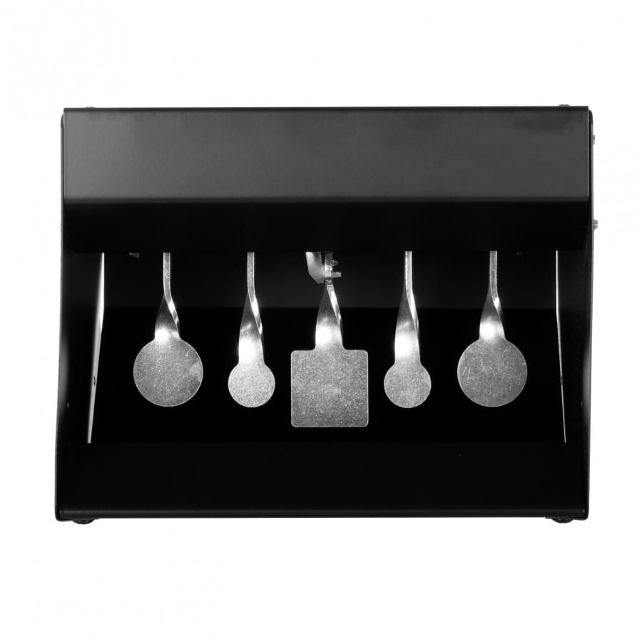 Jeśli znudziło Ci się strzelanie do papierowych tarcz, warto sięgnąć po kulochwyt z celami wahadłowymi. Kulochwyt wydajnie wyłapuje śruty, chroni środowisko naturalne i zapobiega także rykoszetowaniu pocisków, dzięki czemu możemy stworzyć bezpieczną strzelnicę nie tylko w przydomowym ogrodzie lub podwórku, ale także w pomieszczeniu mieszkalnym lub gospodarczym. Kulochwyt ma 4 cele reaktywne w postaci metalowych płytek, które po celnym trafieniu chowają się wewnątrz obudowy. Metalowa zapadka utrzymuje cele w górnym położeniu aż do chwili trafienia w środkowy cel, odpowiadający za zdalne „zerowanie” kulochwytu. Taka funkcjonalność powoduję, że strzelanie do kulochwytu spinner dostarcza wielu pozytywnych emocji i jest znacznie wygodniejsze, ponieważ w odróżnieniu od tradycyjnych celów reaktywnych, nie musimy po każdym strzelaniu ręcznie reaktywować kulochwytu.