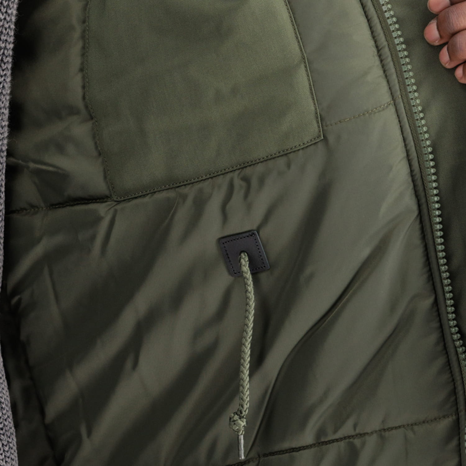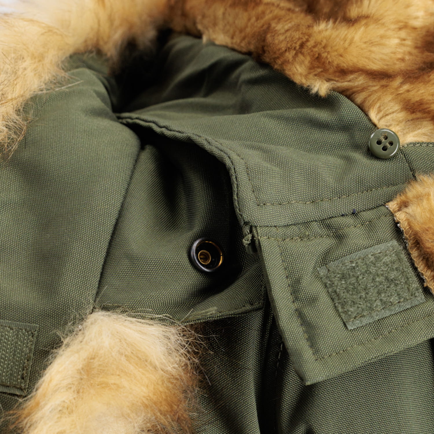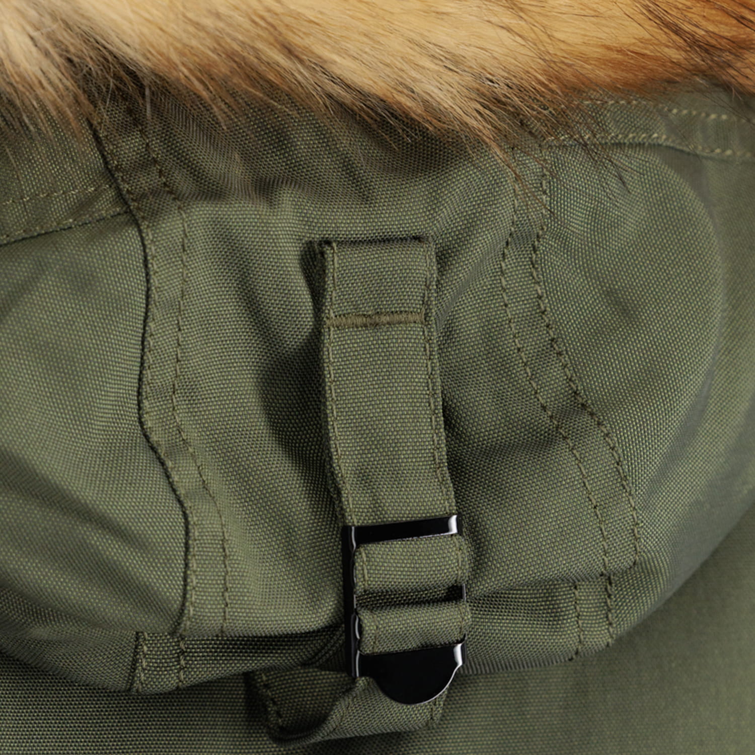 Parka posiada solidny zamek błyskawiczny, osłonięty klapą zapinaną na duże, „kanadyjskie” guziki. Te z łatwością poddadzą się palcom osłoniętym nawet grubą rękawiczką. Kurtka ma sześć kieszeni: dwie głębokie i ocieplane na piersiach, dwie na poziomie pasa, jedną na rękawie oraz jedną wewnętrzną. Kieszenie zewnętrzne zamykane są na zatrzaski.