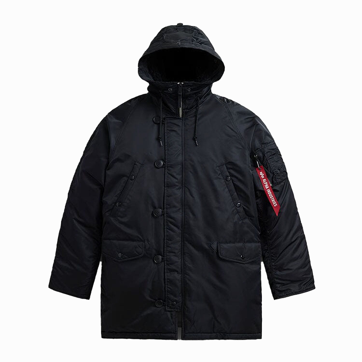 Kurtka męska Alpha Industries N3B czarna to długa, sięgająca połowy uda parka arktyczna. Dzięki krojowi, dobrym materiałom i solidnemu wykonaniu chroni przed zimnem, wiatrem i deszczem. Przypadnie do gustu każdemu, to szuka sprawdzonej outdoorowej odzieży na sezon jesienno-zimowy.