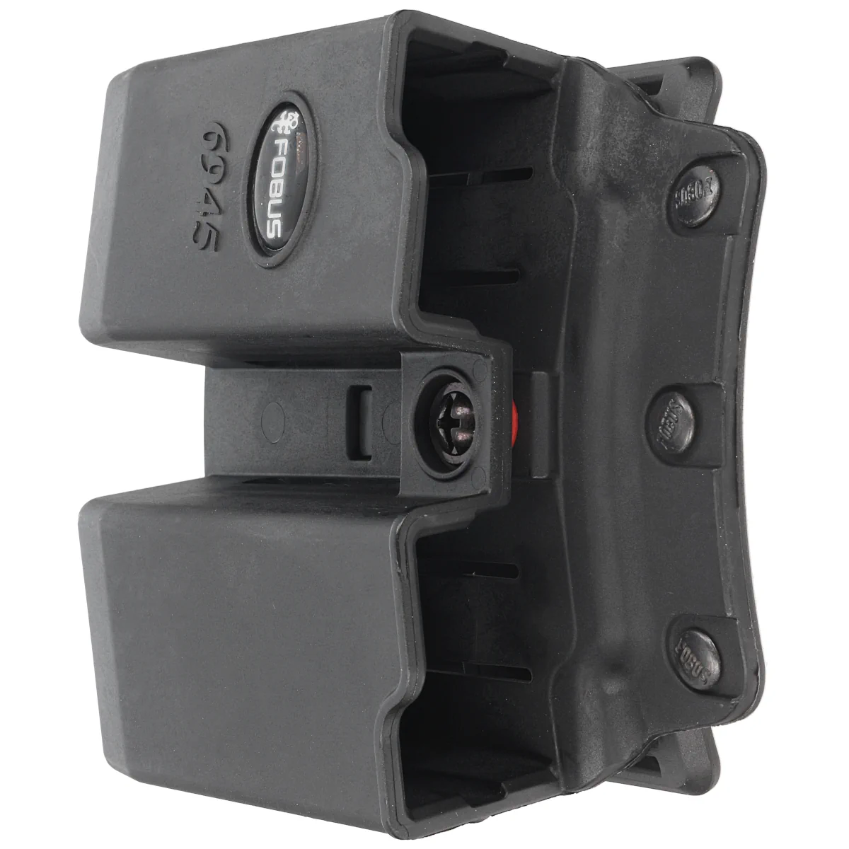 6945 BH ND, ładownica typu otwartego firmy Fobus na dwa dwurzędowe magazynki pistoletowe w kalibrze .45do pistoletu typu S&W, Springfield, H&K, Walther, FN, nie pasuje do pistoletu Glock. Uchwyt wykonano metodą wtryskową z odpornego na zarysowania, udar oraz ekstremalne temperatury tworzywa sztucznego o dużej gęstości.