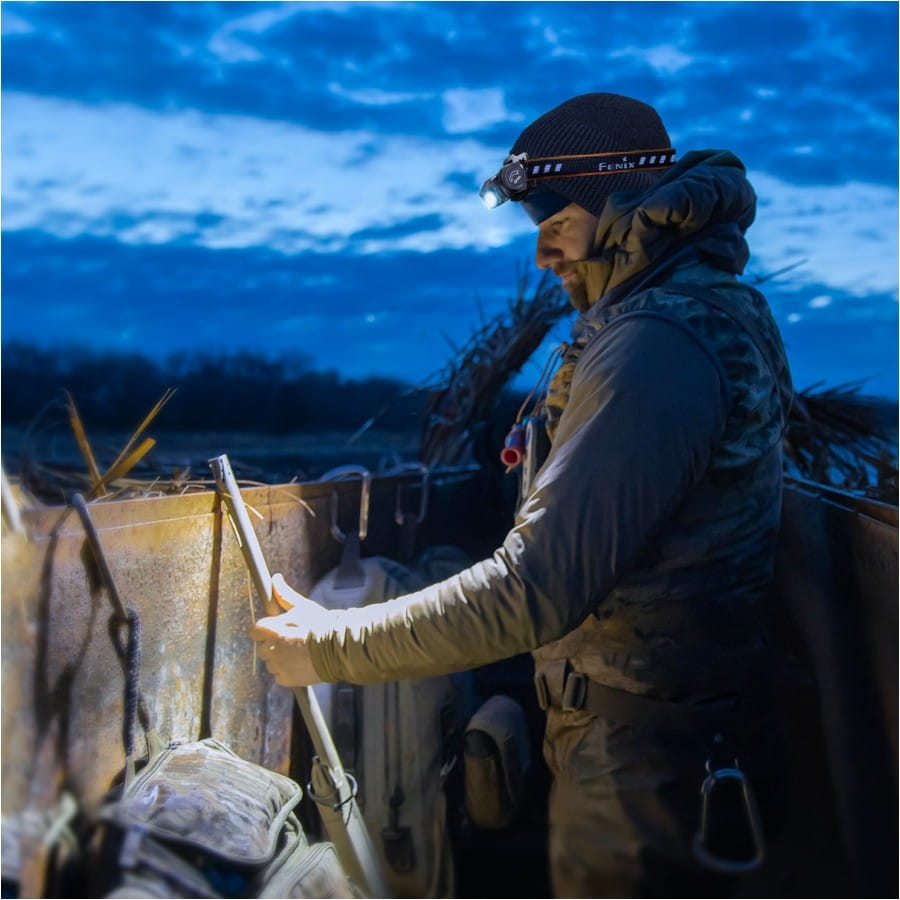Fenix HM60R to trekkingowa latarka czołowa, wyposażona w czujnik częstotliwości kroku, który dostosowuje jasność latarki do prędkości, z którą się poruszamy.
