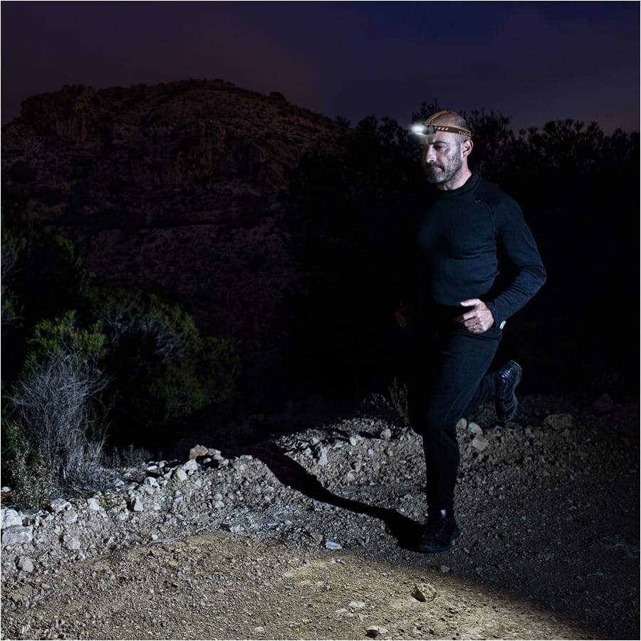 W latarce zastosowano innowacyjne rozwiązanie w postaci czujnika częstotliwości kroków, który reguluje jasność czołówki wraz ze wzrostem szybkości, z którą się poruszamy. Biegnąc z prędkością 150 kroków na minutę, latarka emituje światło 130 lumenów. Po zwiększeniu tempa do 220 kroków na minutę czołówka zwiększa strumień do 200 lumenów. Zatem im szybciej biegniesz, tym więcej widzisz. Dzięki tej funkcjonalności latarka świetnie sprawdzi się w roli czołówki do biegania, niezależnie czy uprawiasz jogging, biegi na orientację, czy długodystansowe biegi górskie.