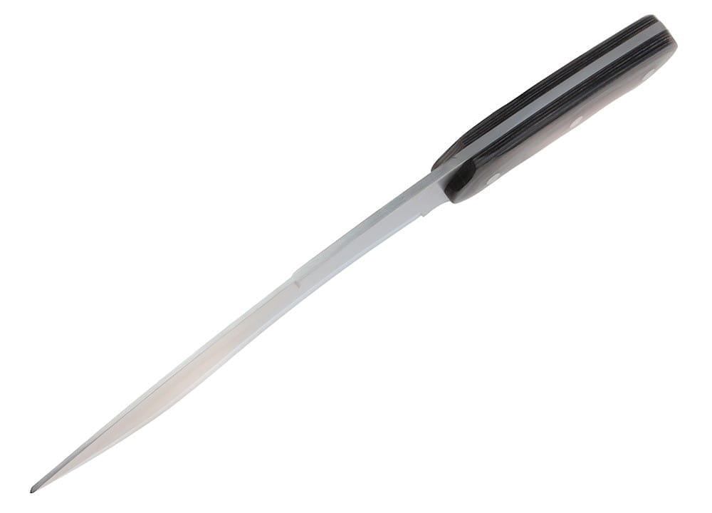 Klasycznie opadająca głownia o profilu drop point posiada lekko falowane ostrze gładkie, które idealnie nadaje się do wykonywania różnorakiej pracy.
