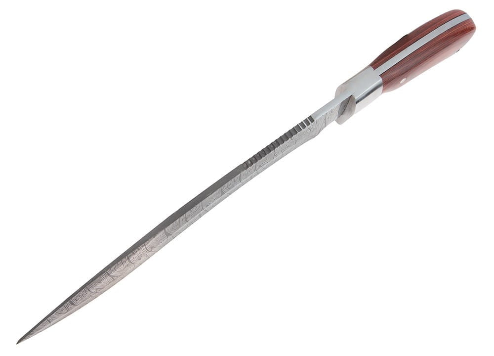 Została wyposażona w metalowy jelec, który skutecznie ochroni dłoń przed zsunięciem się w stronę krawędzi tnącej.