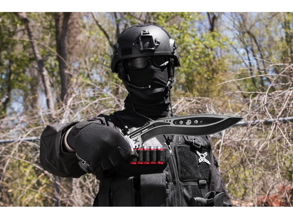 Model UC3160 od United Cutlery to kompaktowa wersja klasycznego noża kukri, której rozmiary przypominają duży nóż bojowy, co czyni go świetnym narzędziem do różnorodnych zastosowań, takich jak wyprawy survivalowe, prace ogrodowe czy codzienne zadania outdoorowe. Ten wyjątkowy nóż należy do serii M48, która czerpie inspirację z tradycyjnych, sprawdzonych projektów, łącząc je z nowoczesnymi rozwiązaniami. Srebrno-czarne ostrze o charakterystycznym kształcie kukri zapewnia funkcjonalność oraz elegancki wygląd, idealny do pracy w terenie.