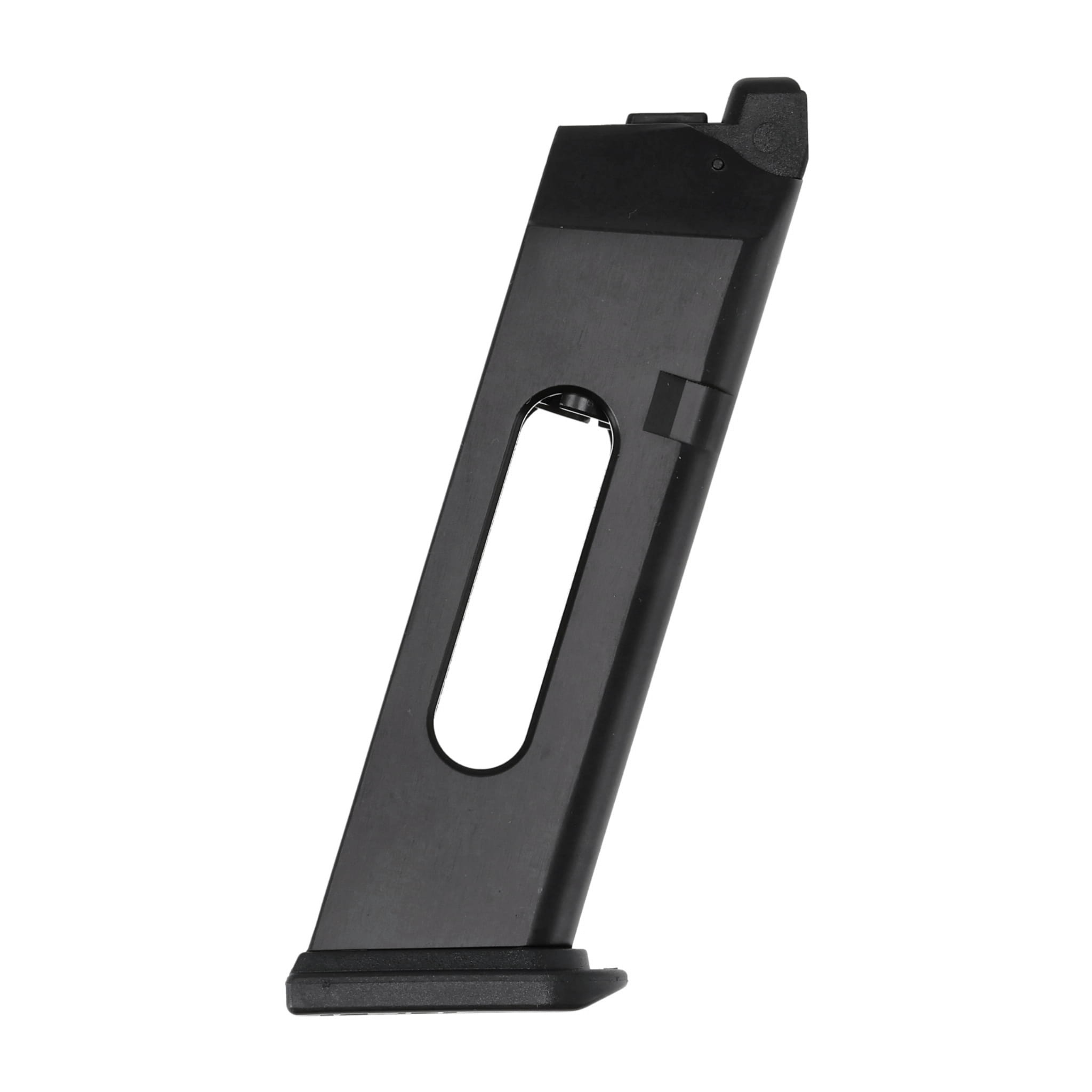 Korpus magazynka wykonano z metalu, stopka jest polimerowa. Wewnątrz magazynka znajduje się przedziała na kapsułę CO2, która służy do zasilania repliki.