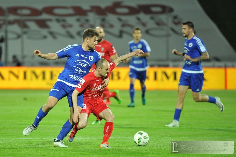 Zawodnicy Stali Mielec tak łatwo nie oddawali pola. Wysoko podchodzili pod bramkę Zagłębia. I stało się. Po faulu w 27 minucie arbiter dyktuje karnego dla Stali Mielec. Egzekutorem jest Aleksandar Kolev, który zmusza Szumskiego do kapitulacji. Choć wyczuty, silny, płaski strzał jest nie do obrony i piłka prześlizguje się pod rękawicami golkipera. Bramka była kubłem zimnej wody dla zawodników Zagłębia. Na szczęście dość szybko otrząsnęli się i po kliku minutach odzyskali inicjatywę. Po dalekim podaniu Martin Pribula trafia do bramki Tomasza Libery. Pozostałe 10 minut meczu jest bezbarwne i nie przynosi żadnego rozstrzygnięcia. Druga połowa rozpoczyna się od kapitalnej akcji Szymona Sobcza, który był doskonale ustawiony na krótkim rogu bramki Szumskiego. Na szczęście został zablokowany ale interwencja nie przyniosła uspokojenia pod bramką Zagłębia. Piłka wyszła na róg. I zawodnicy Stali Mielec ponownie stanęli przed szansą pokonania Szumskiego.