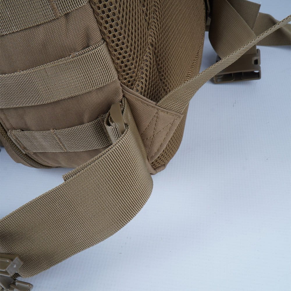 Dzięki zastosowaniu zewnętrznych palsów (systemu poziomych troczeń) praktycznie z każdej strony można zamontować dodatkowe moduły zgodne ze standardem MOLLE/PALS.