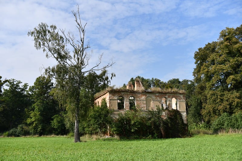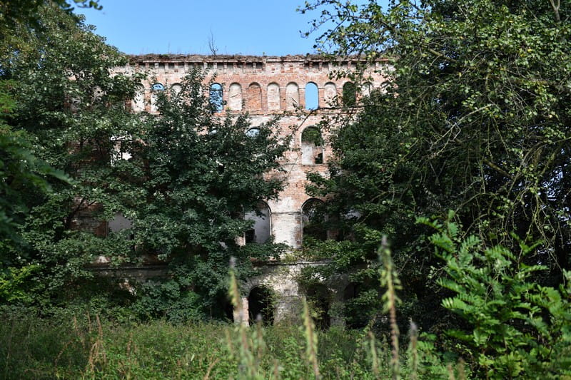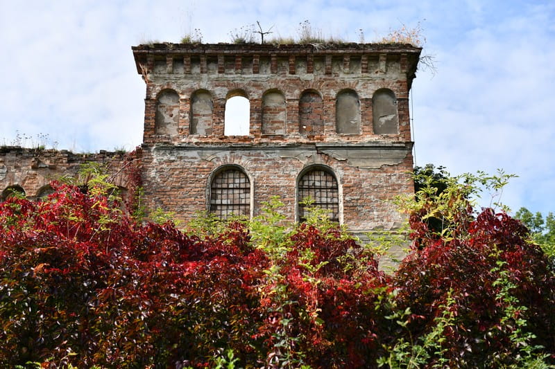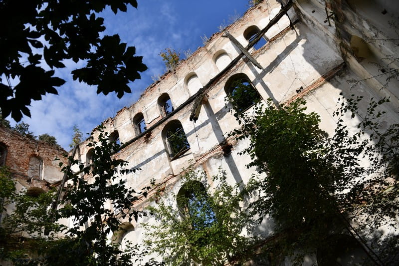 Obecnie zarastają roślinnością nisko i wysokopienną bo dodaje zabudowaniom uroku szczególnie w okresie jesiennym. Niestety też przyczyniają się do niszczenia kompleksu.