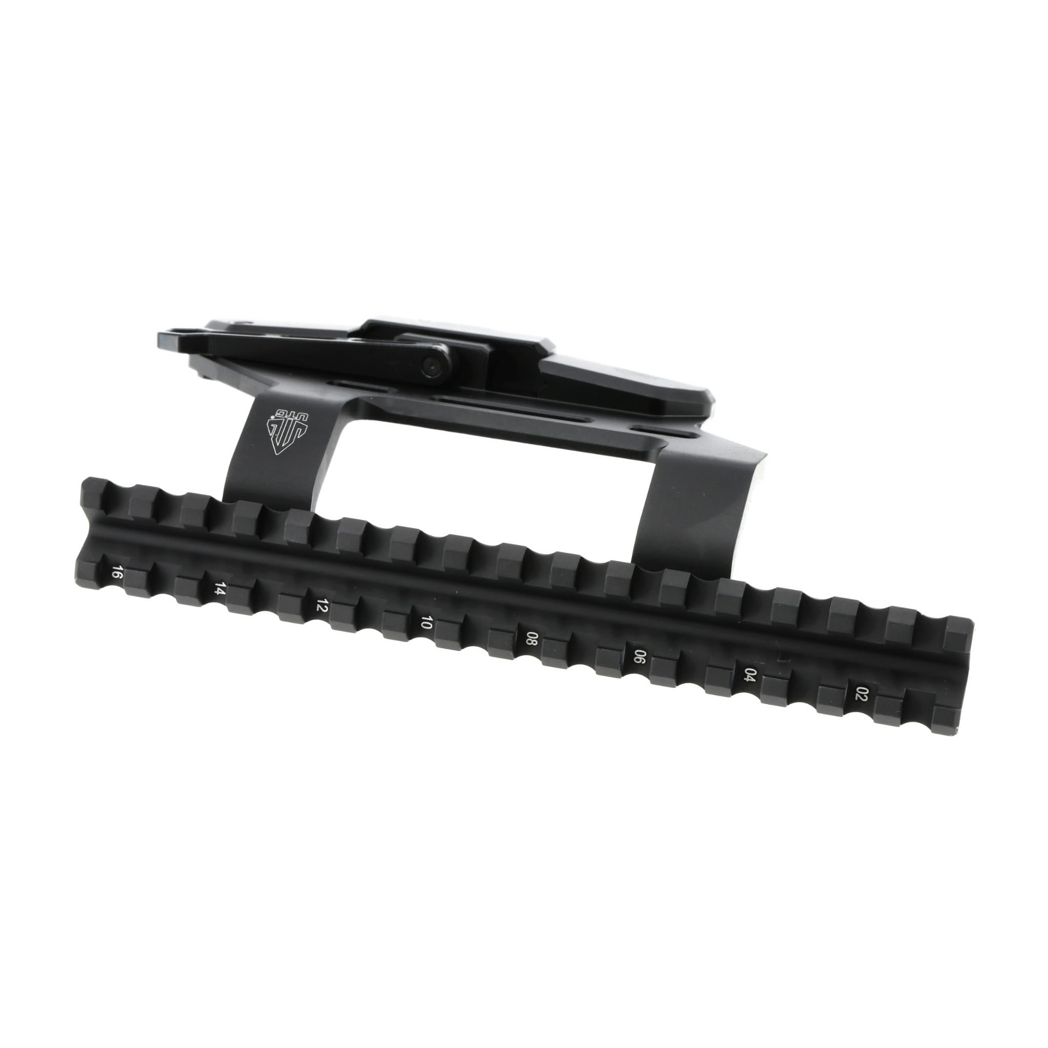 Boczny montaż ACCU-SYNC® Leapers UTG QR AK jest przeznaczony do karabinów z rodziny AK. Wyposażony w górną szynę montażową Picatinny MIL-STD-1913 oraz dwa boczne gniazda M-LOK®, montaż ten umożliwia zamocowanie dodatkowych akcesoriów strzeleckich, takich jak celowniki optyczne, latarki czy uchwyty.