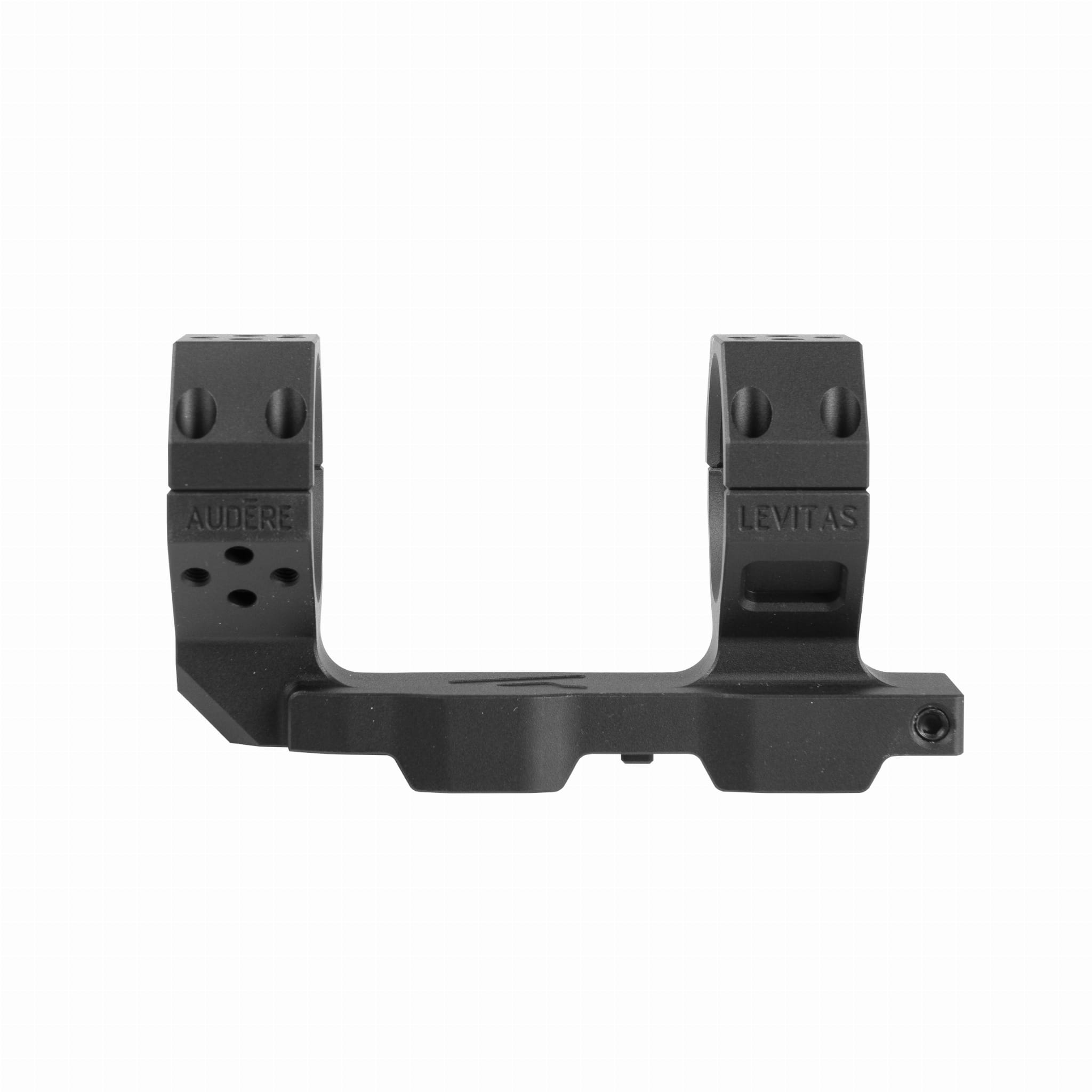Montaż lunety Audere Levitas Cantilever powstał przede wszystkim z myślą o zapewnieniu użytkownikowi możliwie niskiej masy. Z tego powodu w konstrukcji zastosowano wysokiej jakości aluminium 7075-T651 łączące w sobie lekkość z niezwykle wysoką wytrzymałością. Aby zabezpieczyć stop przed korozją oraz zadrapaniami, jego powierzchnia została pokryta anodowaniem typu 3 w standardzie MIL-A-8625, co gwarantuje jej wysoką twardość oraz trwałość.