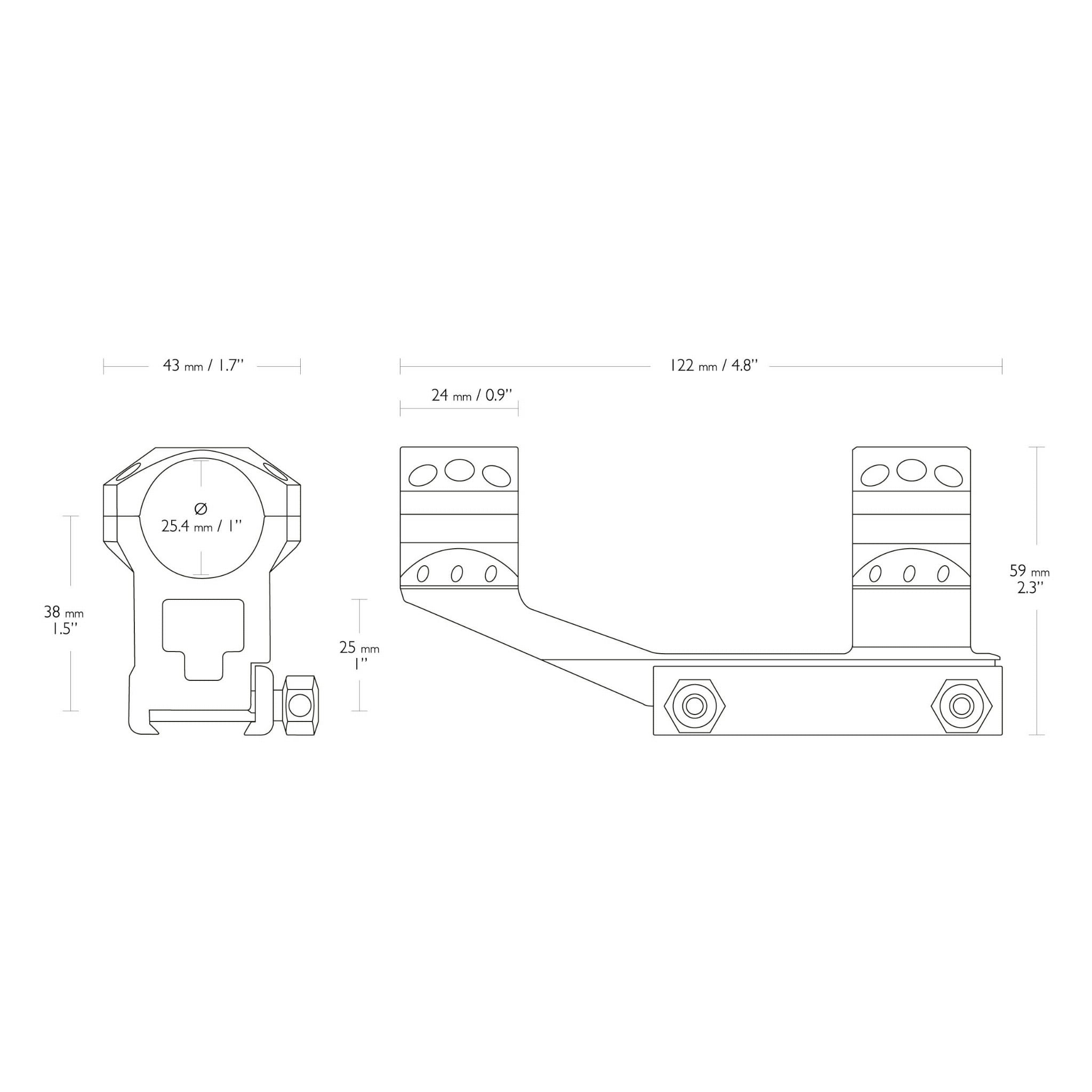 Jednoczęściowy wysoki montaż Hawke Cantilever Tactical AR przeznaczono do lunet o średnicy tubusu wynoszącej jeden cal. Montaż pasuję na szynę Weaver, na której mocuje się go za pomocą dwóch śrub.