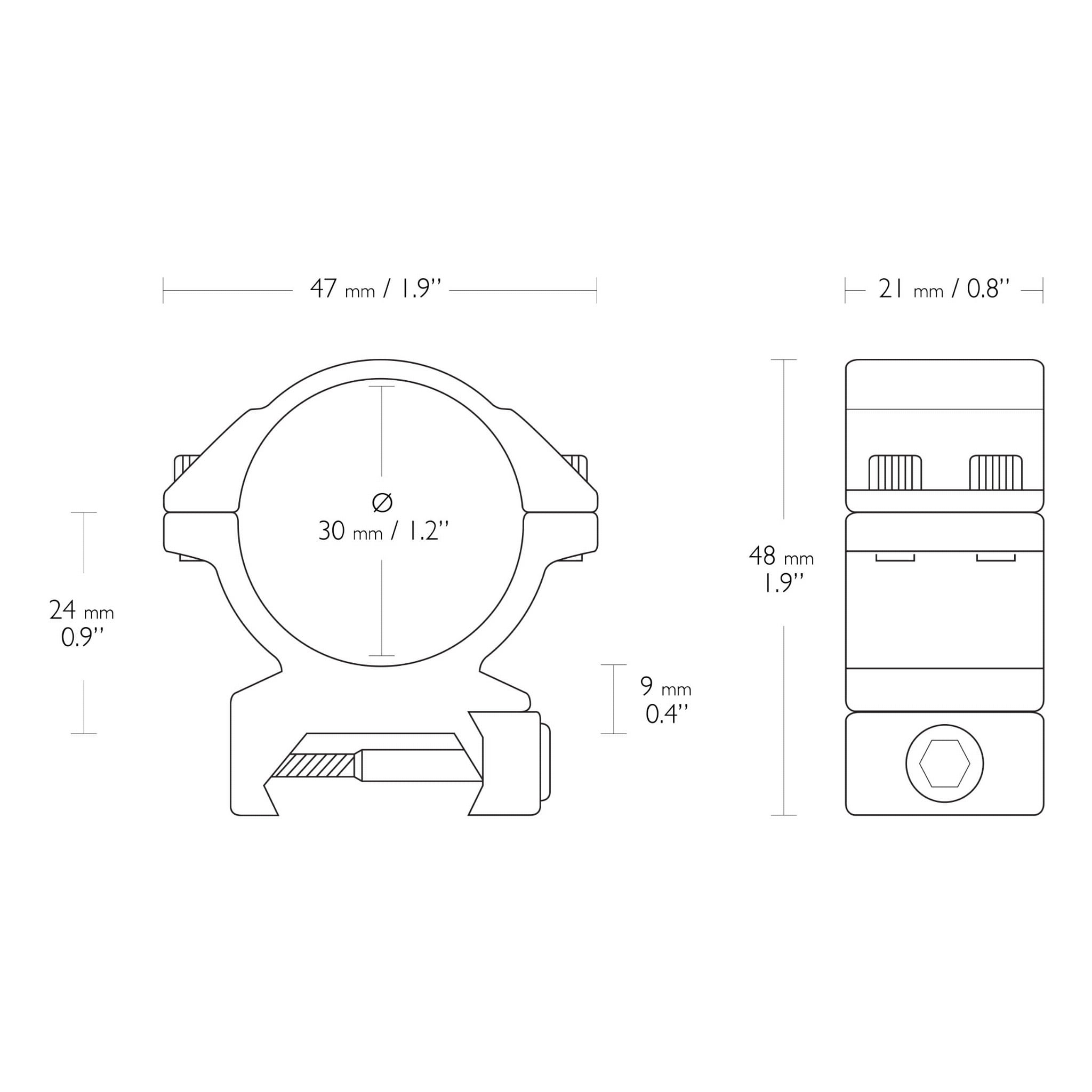 Pierścienie wykonano z anodowanego aluminium. Elementy są lekkie, dlatego nie zwiększą odczuwalnie masy karabinka. Precyzyjna konstrukcja oraz dwie śruby mocujące gwarantują pełną osiowość montażu lunety, stabilne utrzymanie zera oraz odporność na odrzut broni.