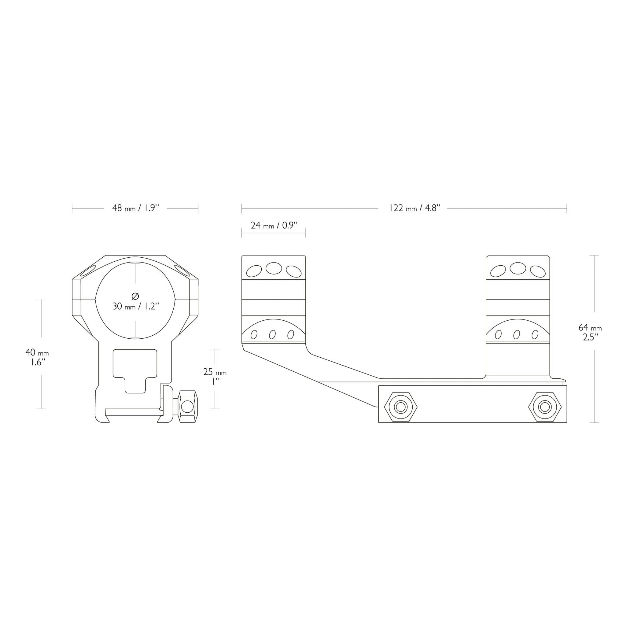 Jednoczęściowy wysoki montaż Hawke Cantilever Tactical AR przeznaczono do lunet o średnicy tubusu wynoszącej 34 mm. Montaż pasuję na szynę Weaver, na której mocuje się go za pomocą dwóch śrub.