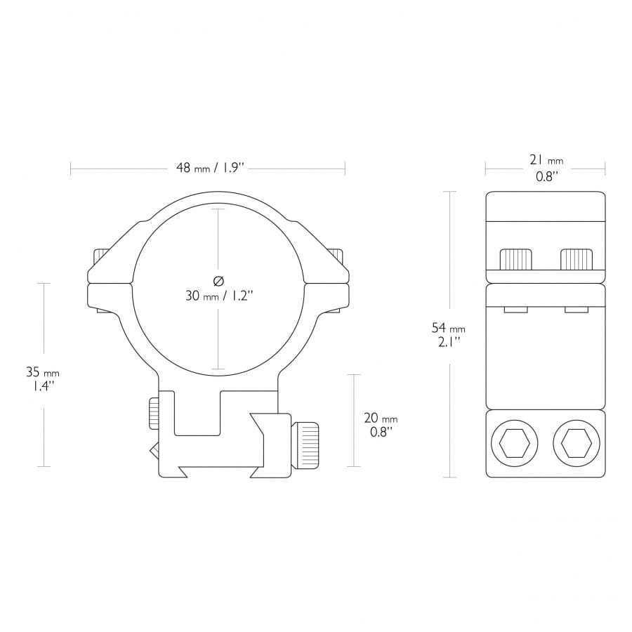 - Wykonany z wytrzymałego aluminium; - czarne anodowane wykończenie zapewnia odporność na wytarcie i zarysowania; - łagodne konturowanie krawędzi zapobiega zaczepianiu o elementy wyposażenie oraz ułatwia dostęp do wieżyczek lunety; - umożliwia zmianę nachylenia lunety w zakresie +/- 30 MOA; - lekka konstrukcja zmniejszająca masę bez utraty wytrzymałości; - wewnętrzne ściany pierścieni okryto taśmą ochronną, która zapobiega porysowaniu tubusa lunety; - wyposażony we wzmocnione (podwójne) śruby mocujące i kołek stopujący.