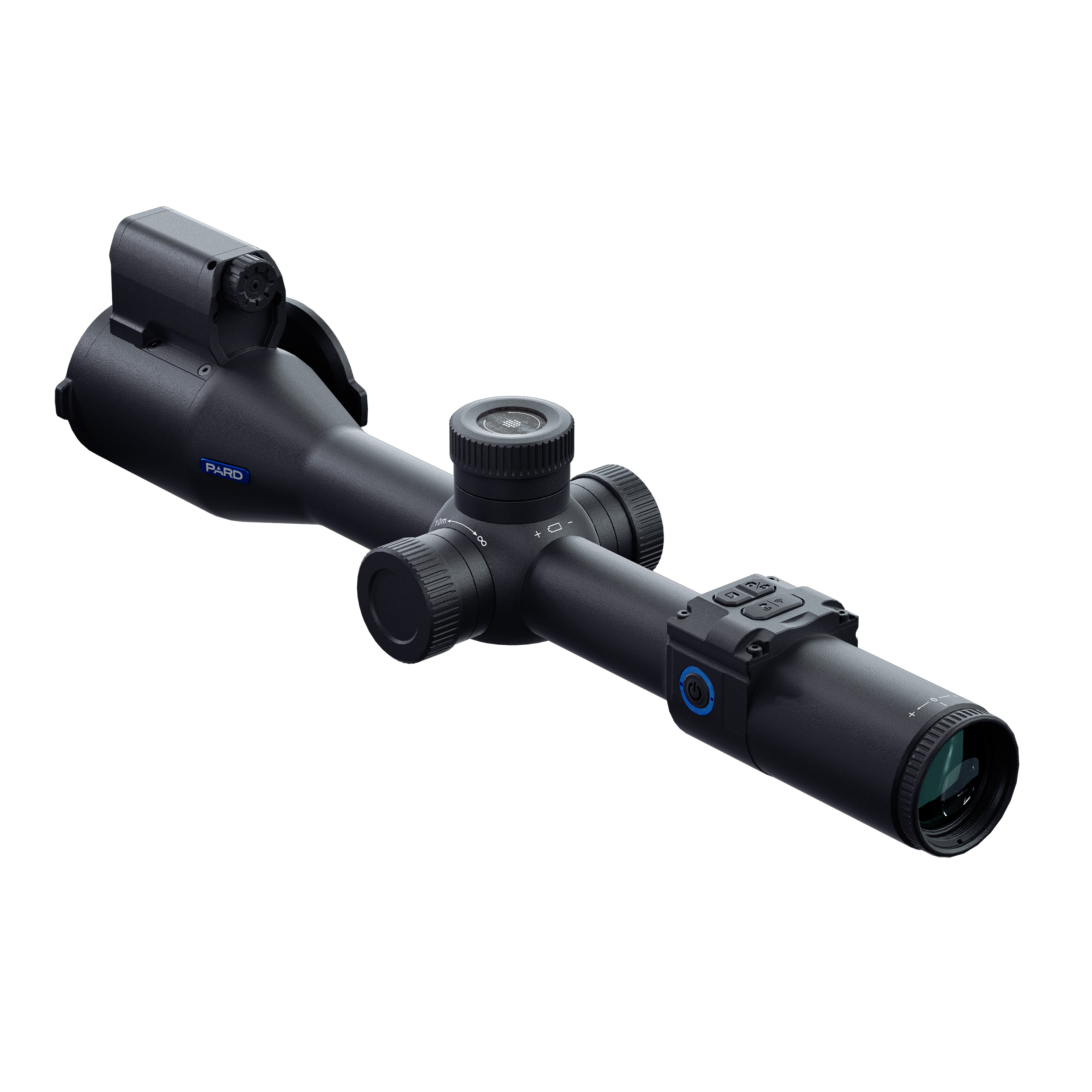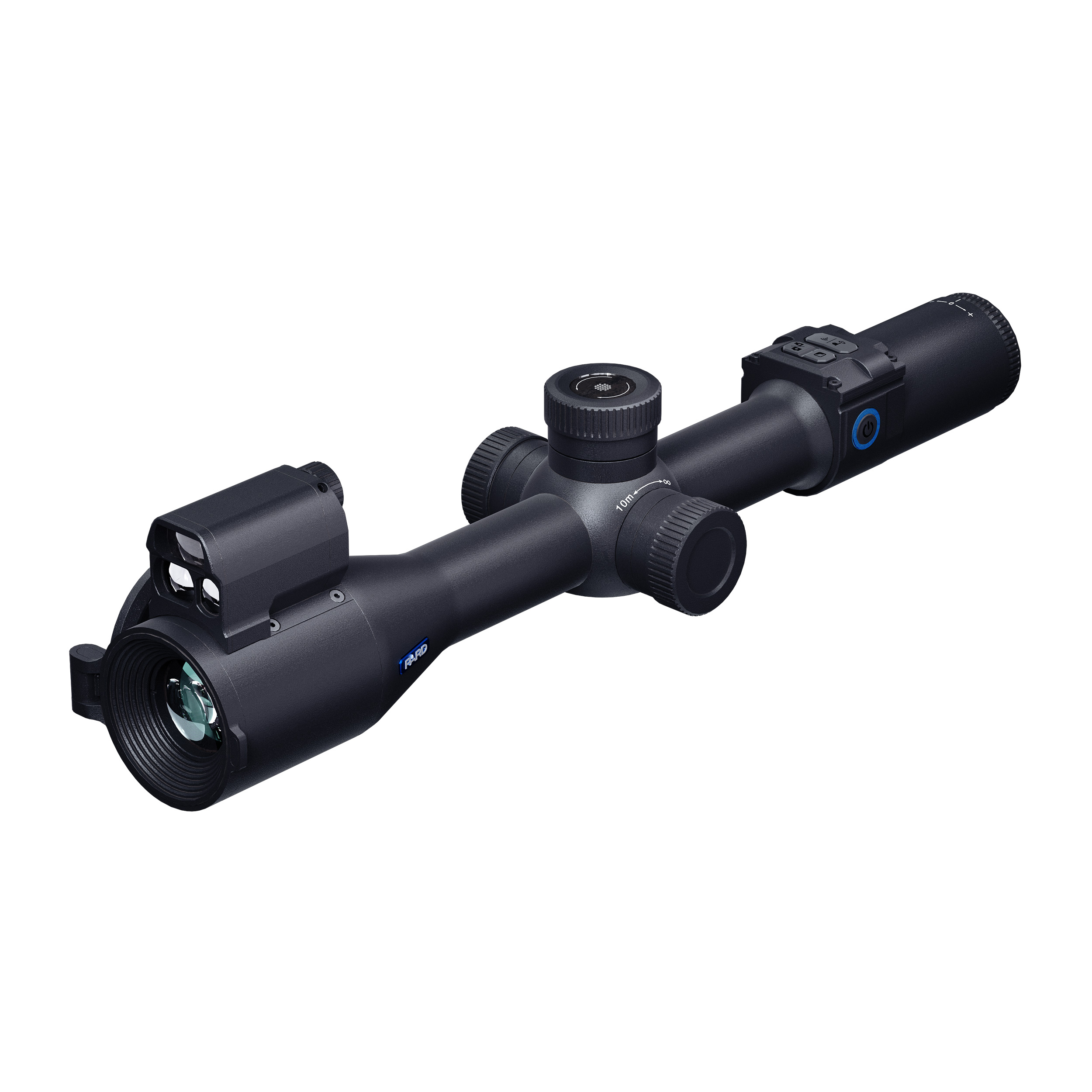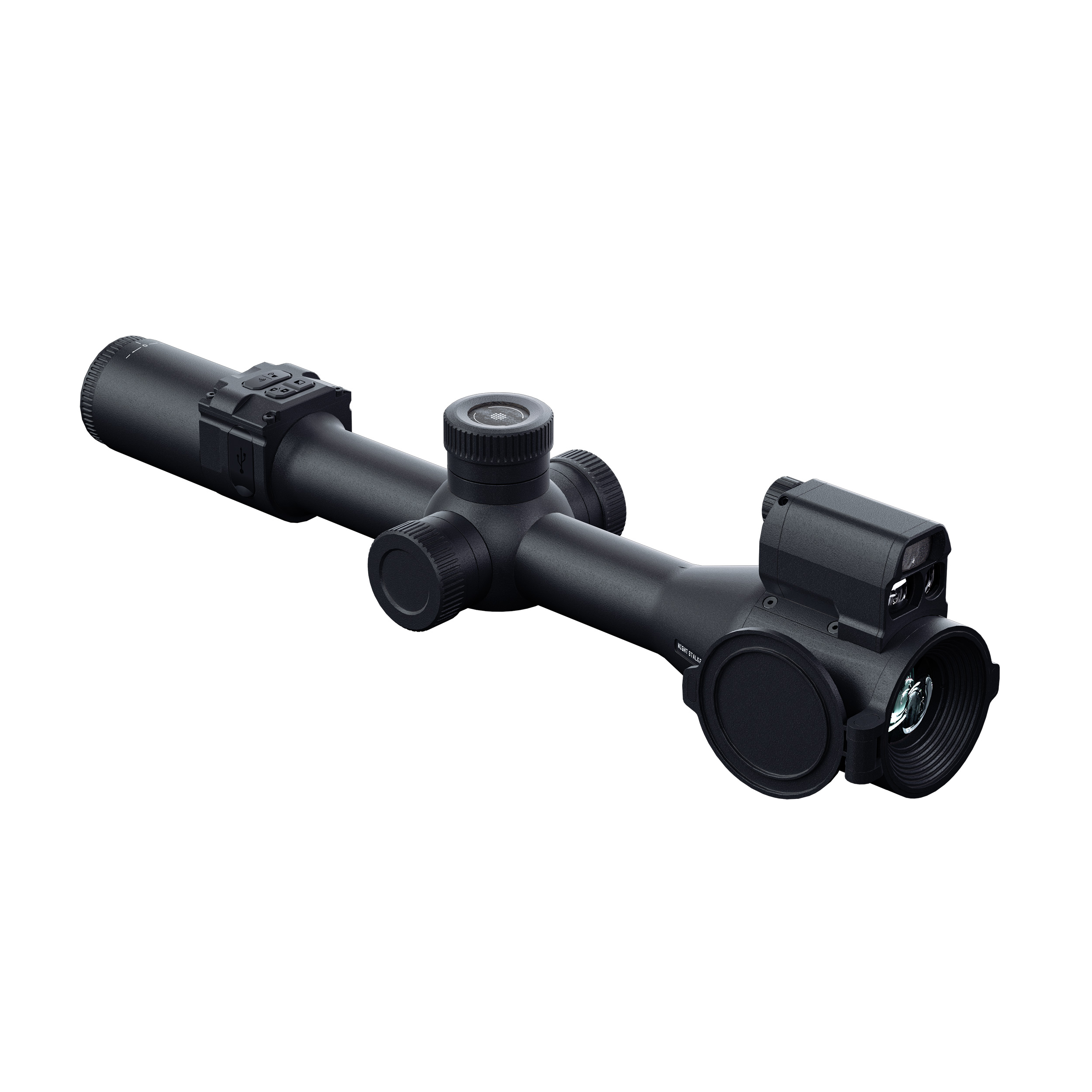 Mocny iluminator IR o zasięgu do 350 metrów oferuje trzy poziomy mocy (niski, średni, wysoki) oraz regulowany kształt wiązki, co pozwala dostosować działanie do sytuacji — niezależnie, czy przeszukujesz ciemny las, czy polujesz w otwartym polu. Jednocześnie wbudowany dalmierz laserowy mierzy odległości na dystansie do 1000 metrów, wspierając precyzyjne wyznaczanie trajektorii strzału. Technologia redukcji szumów PARD oraz algorytmy AI gwarantują wyraźny obraz nawet w trudnych warunkach, takich jak mgła, opady czy gęsta roślinność.