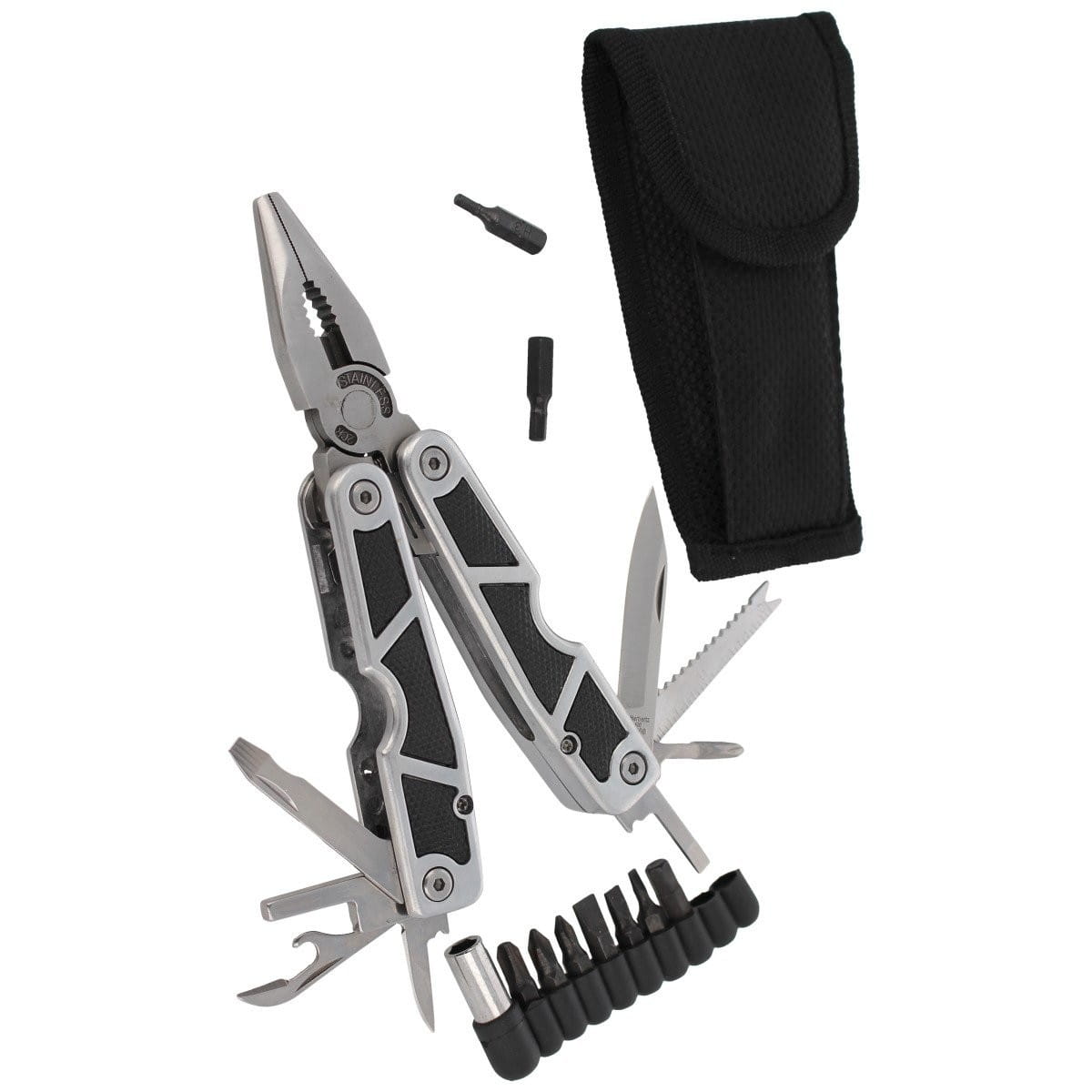 108100 - masywny multi-tool niemieckiej marki Herbertz Solingen w doskonalej cenie! Pokryty matową nierefleksyjną powłoką. Wyposażony w zestaw niezbędnych narzędzi przydatnych w wielu codziennych sytuacjach. Nylonowy pokrowiec oraz zestaw 10 bitów w komplecie.