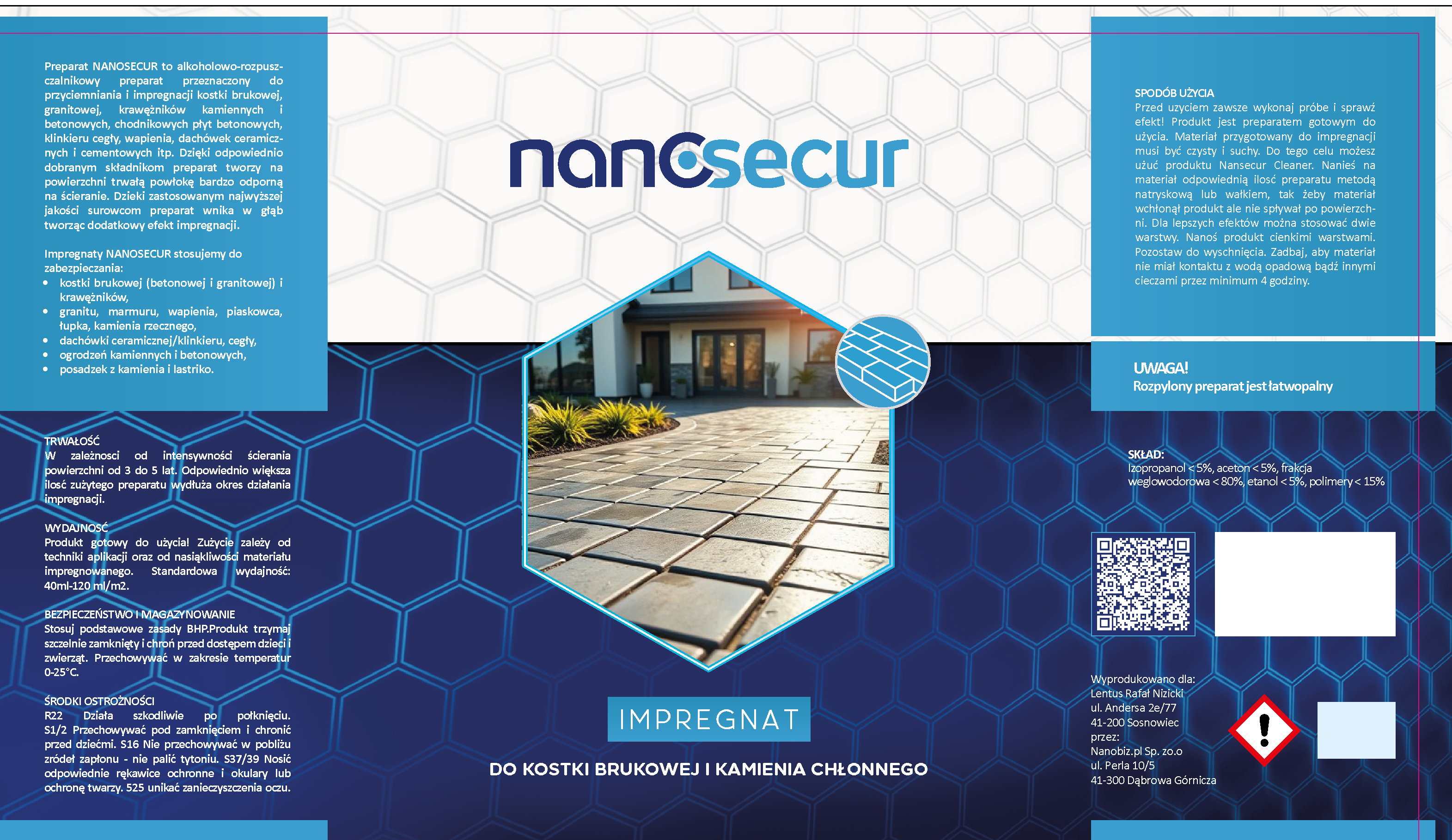 Produkt NANOSECUR – Impregnat do Kostki Brukowej i Kamienia Chłonnego został stworzony z myślą o nawierzchniach zewnętrznych: kostce brukowej, płytach chodnikowych, obrzeżach, kamieniach naturalnych o chłonnej strukturze (jak piaskowiec, wapień, łupek) i innych materiałach mineralnych.