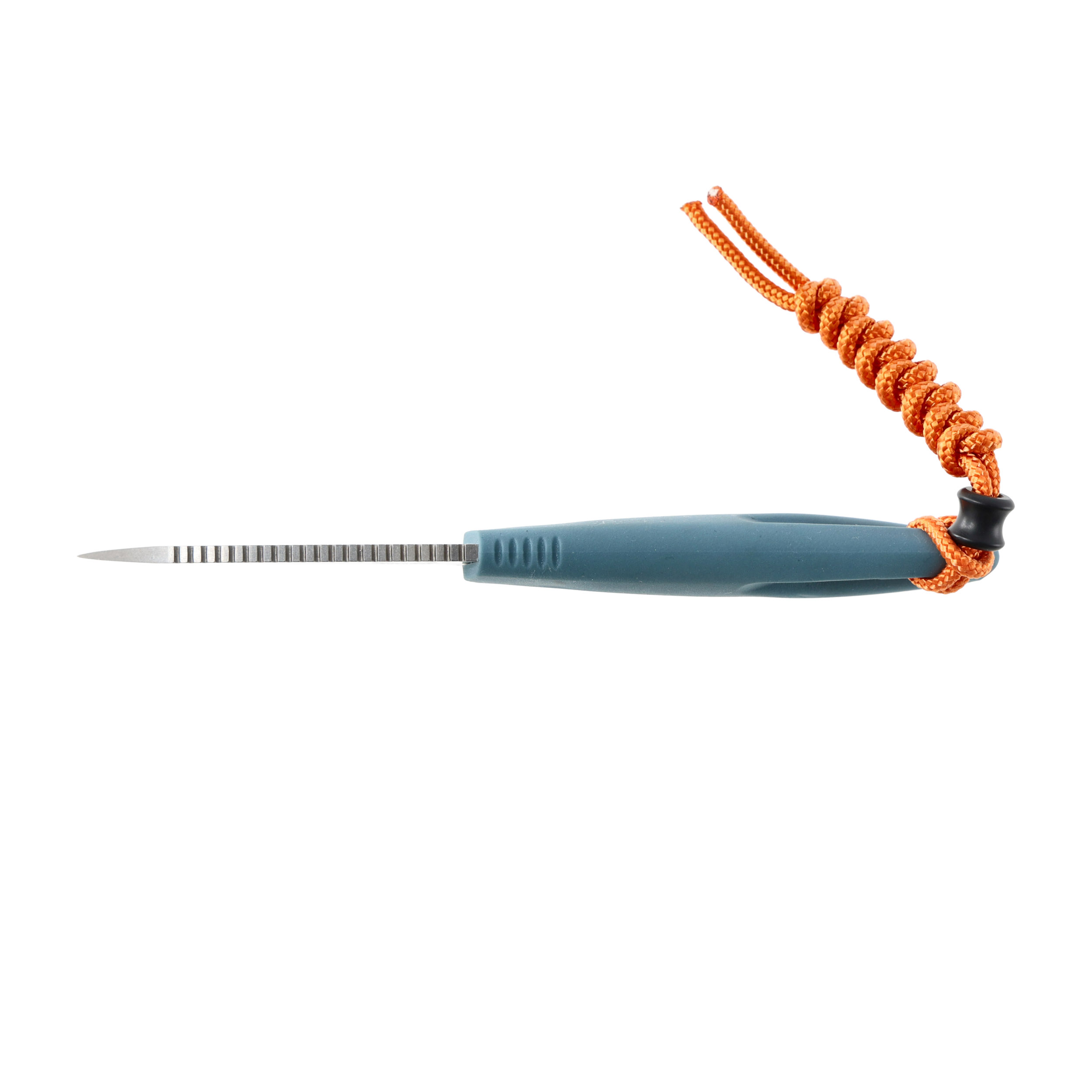 W tylnej części ergonomicznie profilowanej rękojeści umieszczono otwór przeznaczony do mocowania linki lub paracordu, dzięki którym zabezpieczymy nóż przed przypadkowym zgubieniem, będąc np. na łódce.