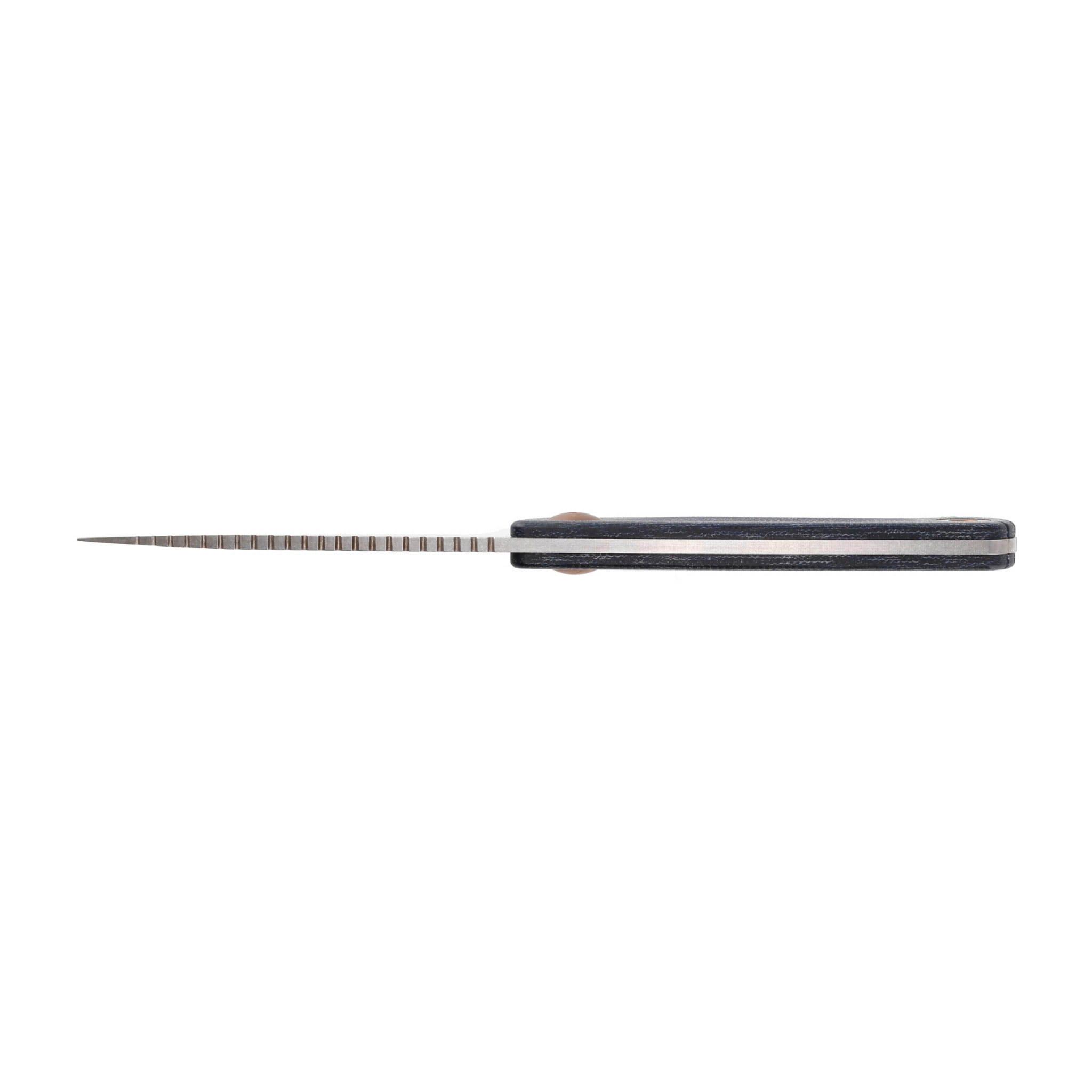 Głownia o długości 89 mm wykonana ze stali CPM-MagnaCut zapewnia doskonałe właściwości tnące. Profil Spear Point w połączeniu z wysokim szlifem oferuje maksymalną skuteczność podczas cięcia i precyzję w różnorodnych zadaniach. Stal CPM-MagnaCut łączy wysoką wytrzymałość z odpornością na korozję, a także zapewnia imponującą retencję ostrości przy twardości 60-62 HRC.