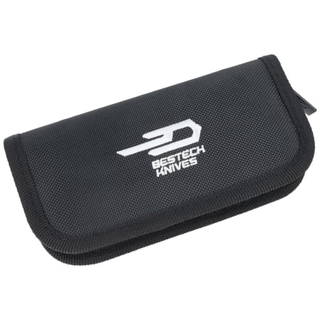 Futerał - nóż zapakowano w zapinany zamkiem nylonowy miękki pouch z logo marki służący do bezpiecznego przenoszenia i przechowywania foldera.