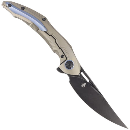 Rękojeść - to dwa kawałki litego tytanu 6AL4V z efektownymi zdobieniami wykonanymi obrabiarkami cyfrowymi CNC. Fazowane krawędzie okładek eliminują ostre ranty dla wygody i poprawiają pewność uchwytu. Masywny tytanowy backspacer do którego przymocowano okładziny gwarantuje sztywność i wytrzymałość całej konstrukcji. Jednopozycyjny, prawostronny tytanowy klips umożliwia przenoszenie noża w pozycji tip-up, czubkiem ostrza ku górze.