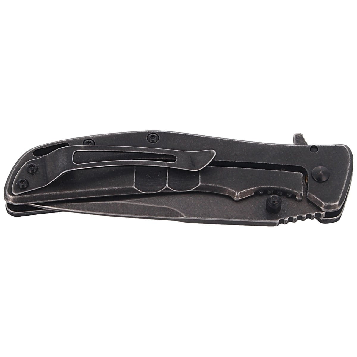 Głownia - grubości 3 mm o profilu Clip Point, zapewnia doskonałą geometrię krawędzi tnącej przy niskim oporze. Klinga wykonana z dobrze trzymającej ostrość stali nierdzewnej 8Cr13MoV (odpowiednik japońskiej stali AUS-8). Ostrze gładkie typu Plain wyprowadzono szlifem wklęsłym (Hollow Grind) zapewniającym doskonałe właściwości tnące oraz redukcję wagi. Eliminująca odblaski powłoka Black Stonewash. Obustronny kołek w klindze (Thumb Stud) pozwala na otwarcie noża nawet gdy dłonie są śliskie czy zmarznięte. Dodatkowo nóż można otwierać za pomocą flippera. Obie metody są przystosowane do obsługi zarówno prawą jak i lewą ręką. Karbowane podparcia: rampa pod kciuk (spine jimping) oraz finger choil jimping, podcięcie pod palec wskazujący na blokadzie.