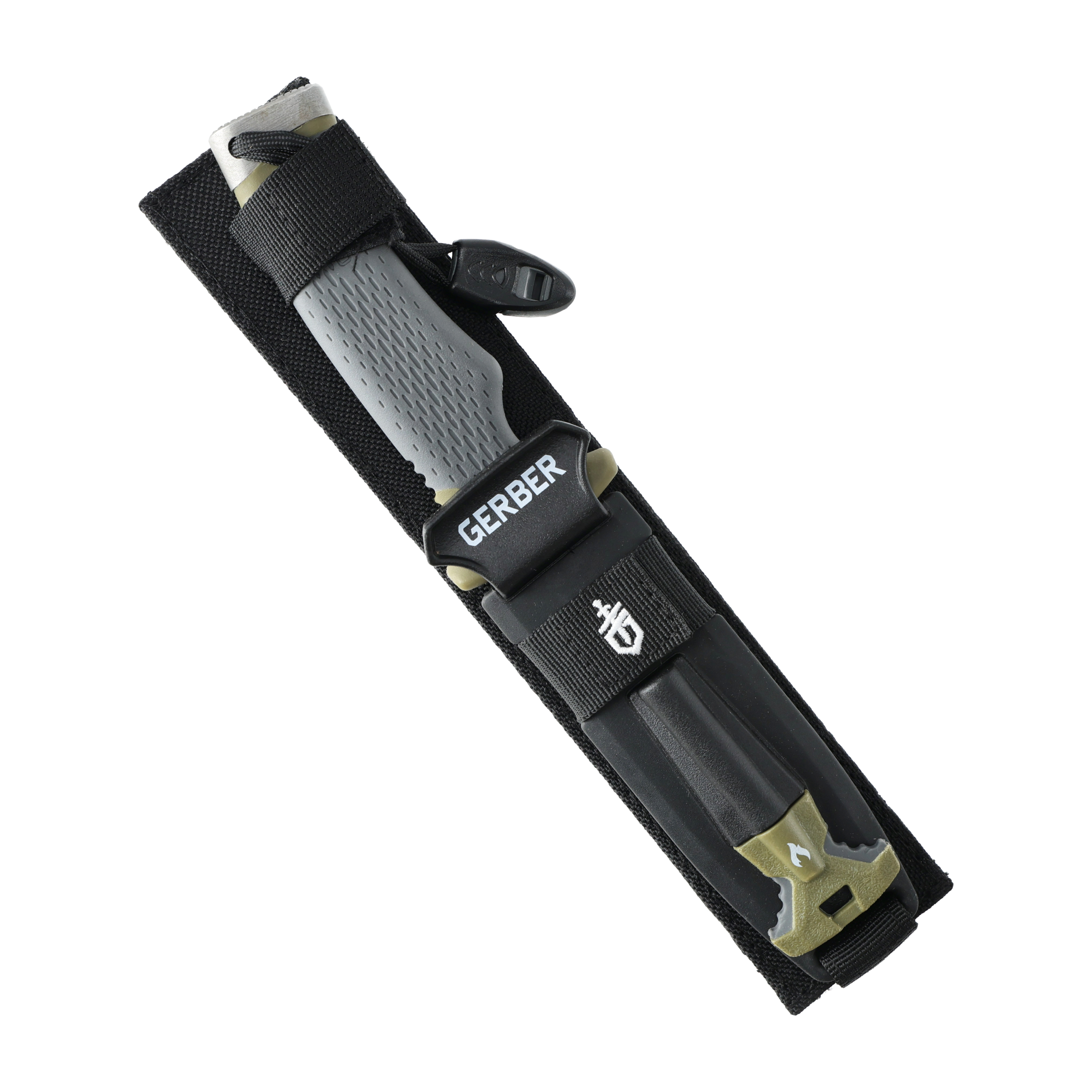 Gerber Ultimate Survival to kompletny zestaw survivalowy, a nie tylko nóż. Znajdziesz tu również krzesiwo do rozpalania ognia oraz gwizdek ratunkowy.