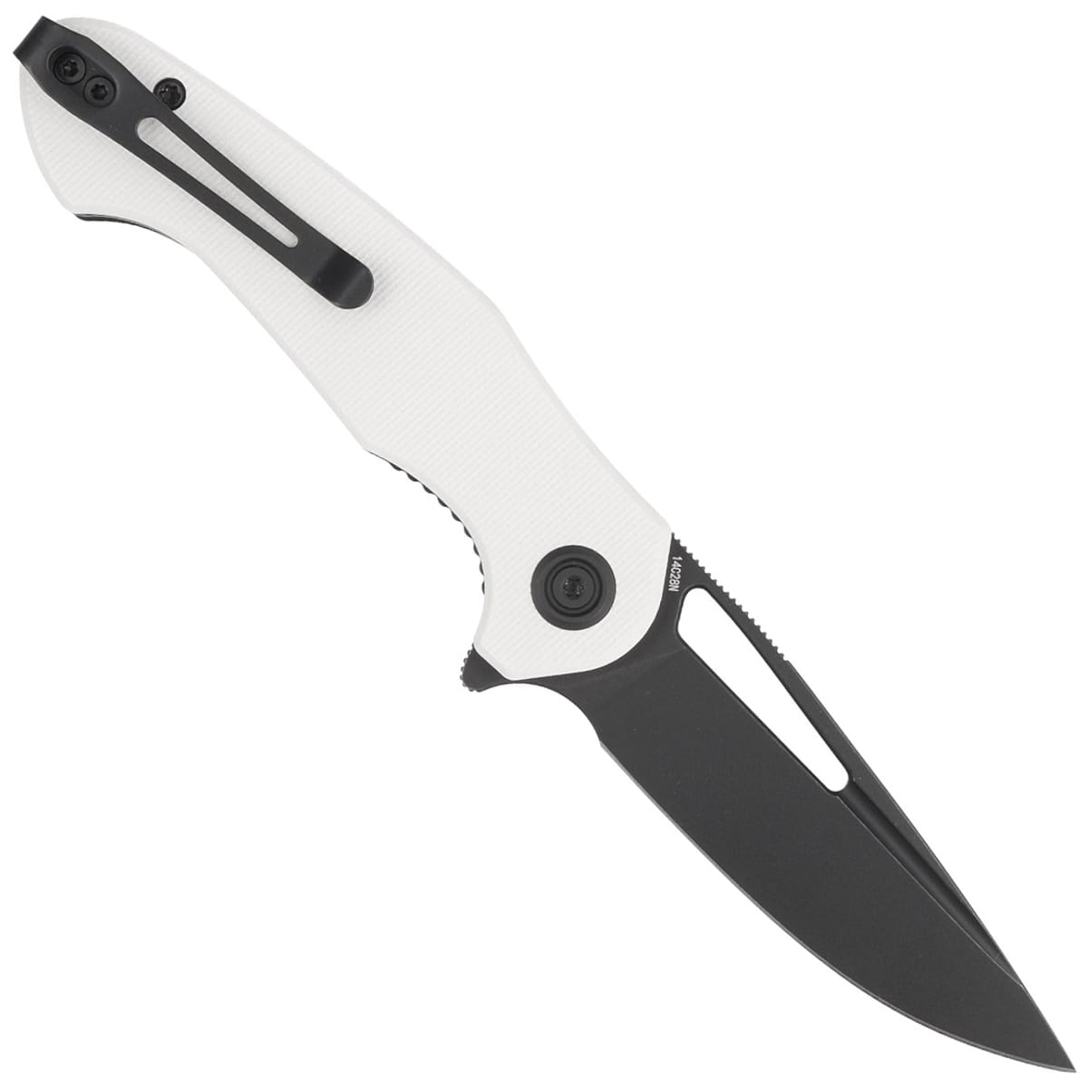 Dugu, Black G10, Sand Blasted 14C28N duży i mocny nóż EDC. Głownia drop point ze stali 14C28N,, szybka płetwa Flippera do otwierania oraz rękojeść z G10. Znakomity stosunek jakości do ceny! Bestseller!