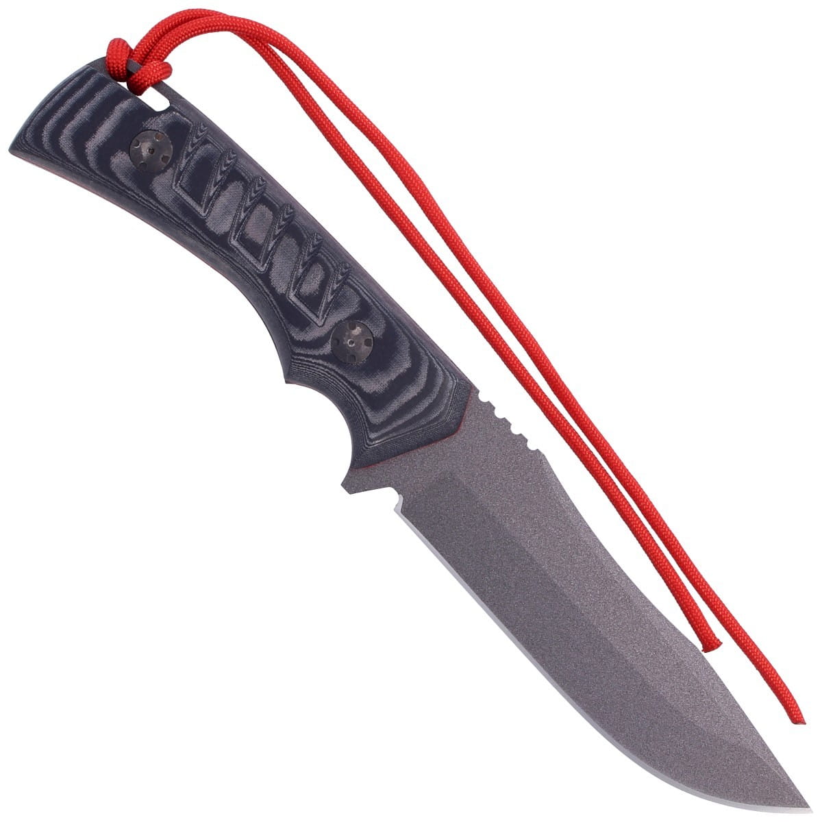 Niezwykle ostra o kształcie Drop Point idealna do wszelakich prac terenowych. Pokryte zapobiegająca odblaskom czarną powłoką PTFE, gładkie ostrze Plain wyprowadzono szlifem wklęsłym (Hollow Grind), który redukuje wagę oraz gwarantuje doskonałe właściwości cięcia. Duży notch ułatwia ostrzenie. Na grzbiecie klingi znajduje się karbowana rampa pod palec (jimping) zwiększająca kontrolę nad nożem.