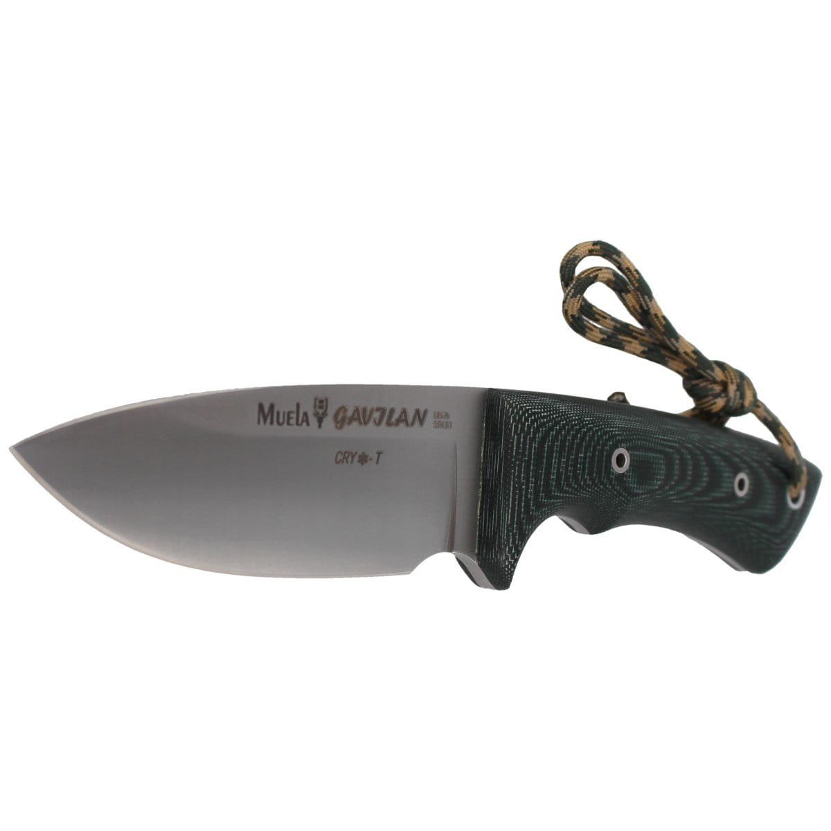 Dane techniczne: Numer produktu: GAVILAN G Rodzaj stali: X50CrMoV15 Długość głowni: 125 mm / 4.92" Grubość głowni: 4.5 mm / 0.16" Długość całkowita: 253 mm / 9.96" Waga: 290 g / 10.23 oz Rodzaj krawędzi tnącej: Plain Typ głowni: Drop Point Rodzaj szlifu: Płaski Materiał rękojeści: Micarta Green Pochwa: Skórzana Producent: Muela, Hiszpania
