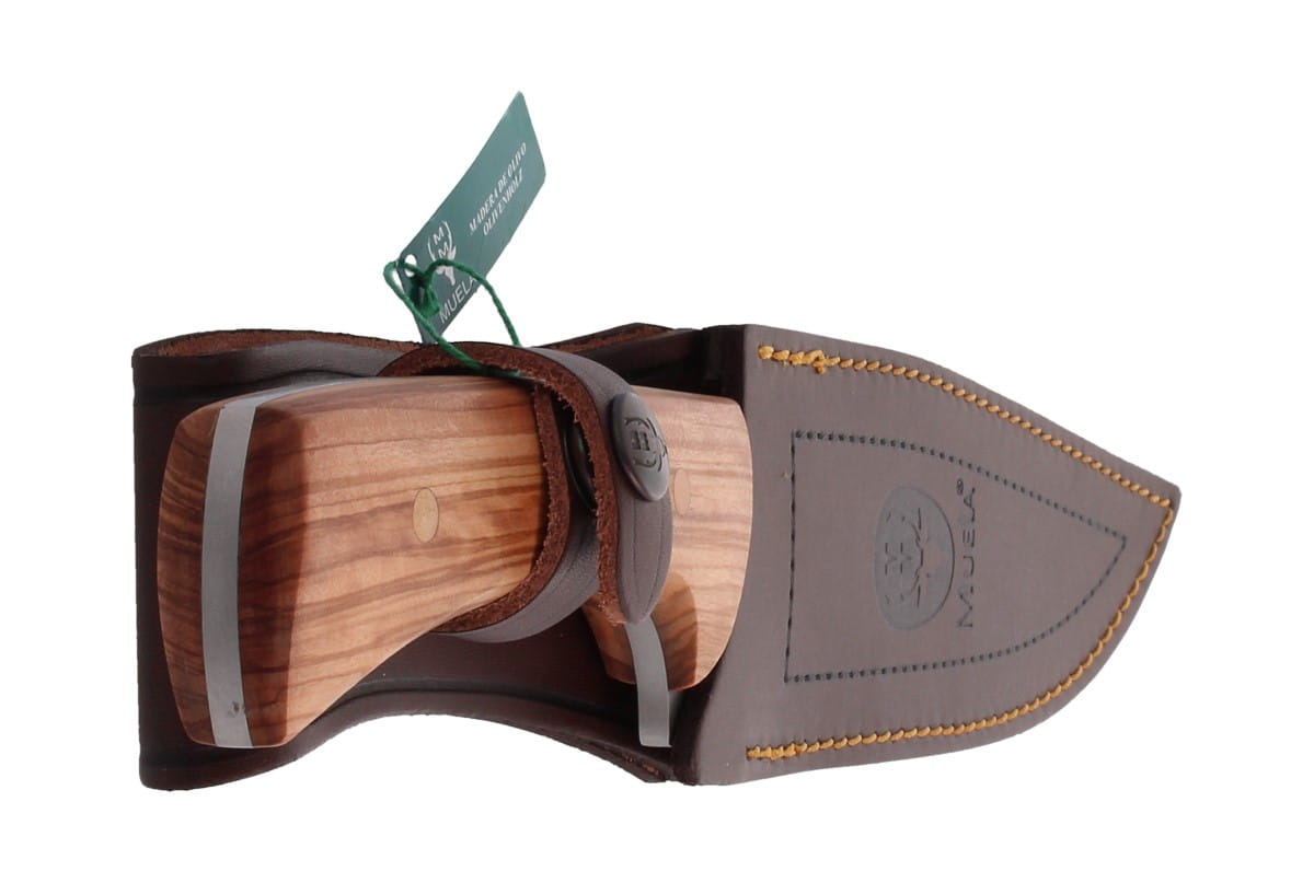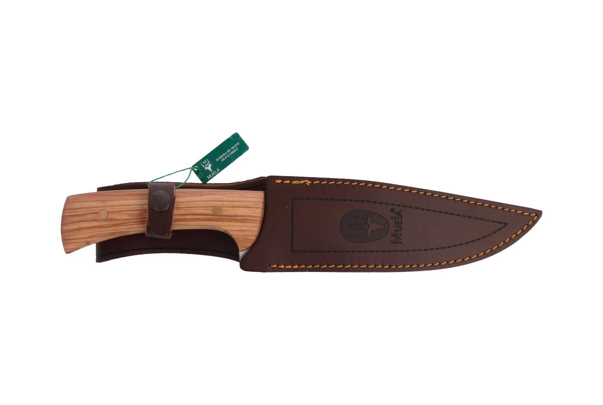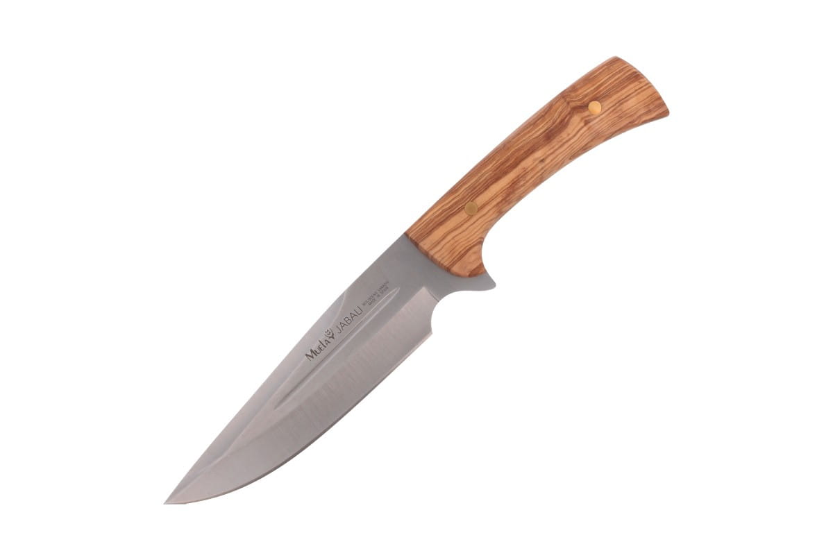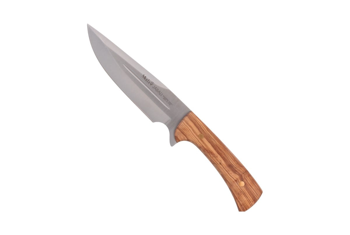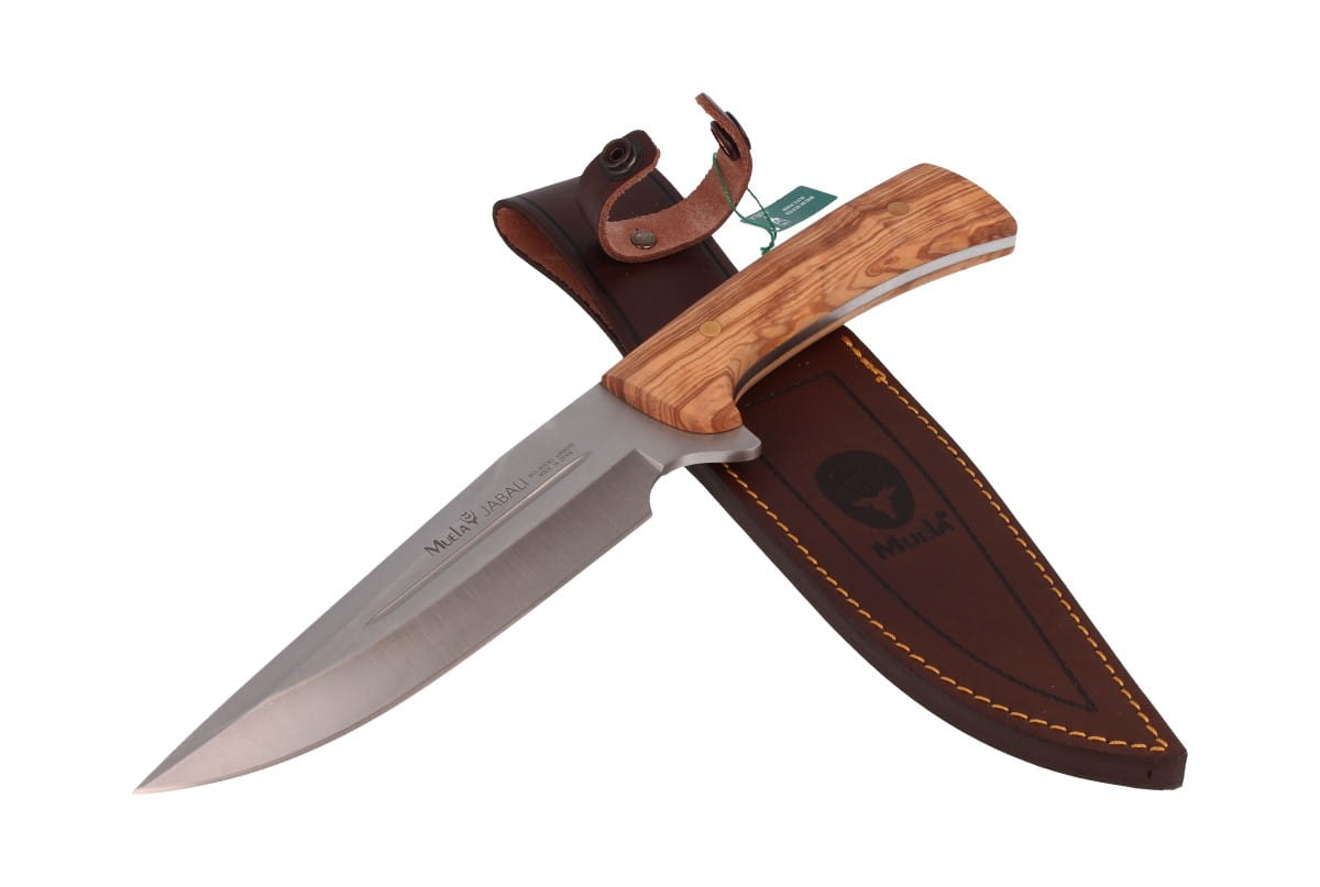 Dane techniczne: Numer produktu: JABALI-17OL Rodzaj stali: X50CrMoV15 Długość głowni: 170 mm / 6.69" Grubość głowni: 4.5 mm / 0.16" Długość całkowita: 300 mm / 11.81" Waga: 334 g / 11.78 oz Rodzaj krawędzi tnącej: Plain Typ głowni: Clip Point Rodzaj szlifu: Wklęsły Materiał rękojeści: Drewno oliwne (Olive wood) Pochwa: Skórzana Producent: Muela, Hiszpania
