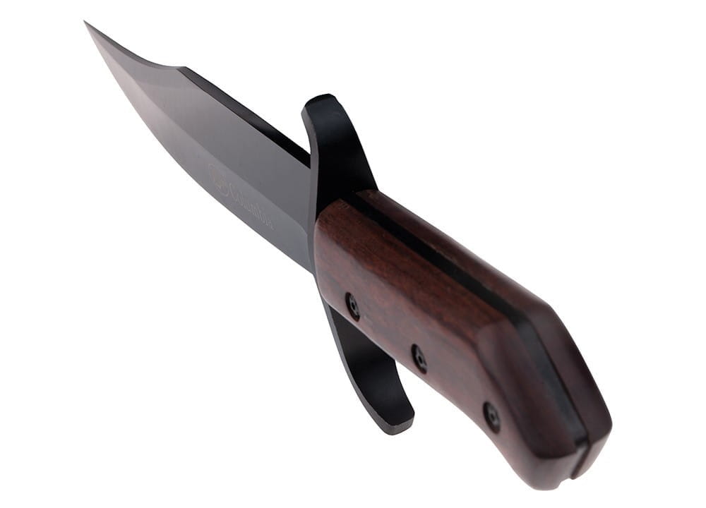 Dodatkowo nóż myśliwski został wyposażony w esowaty, szeroki jelec, który skutecznie zabezpiecza dłoń przed zsunięciem się w stronę krawędzi tnącej.