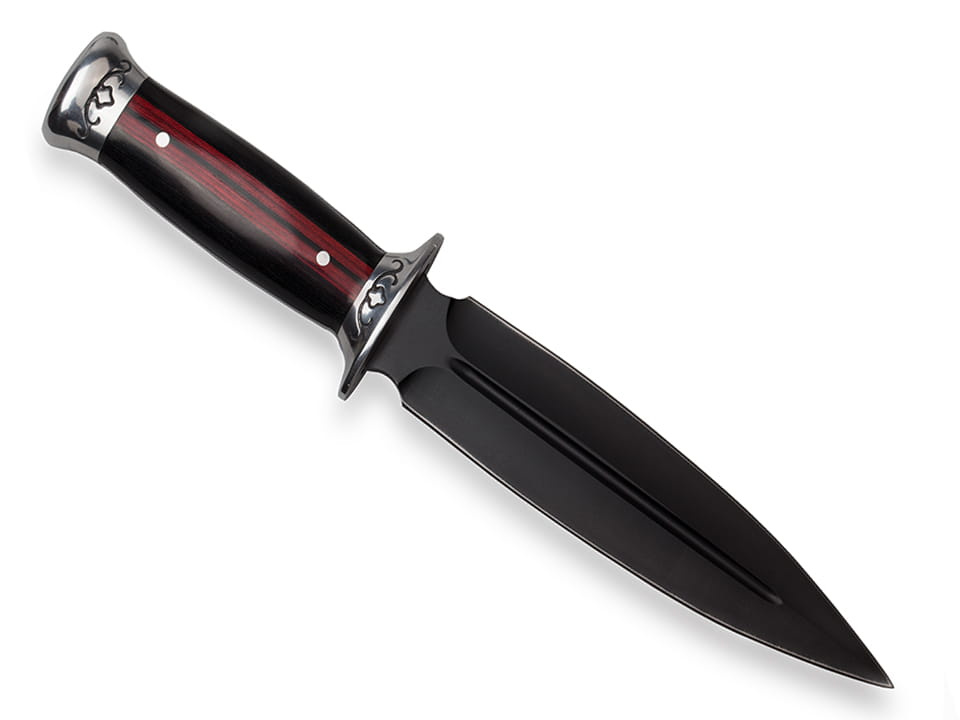 Odkryj potęgę designu połączoną z tradycją. Czarny sztylet BSH N-409B to wyjątkowe narzędzie, które swoim wyglądem nawiązuje do klasycznych sztyletów rytualnych. Mroczna, czarno-czerwona estetyka sprawia, że nóż prezentuje się majestatycznie i spektakularnie, stanowiąc idealny wybór dla kolekcjonerów oraz osób poszukujących narzędzia o silnym charakterze.